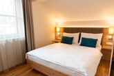 • geräumigen, Vollholz-möblierten Einzel-, Doppel-, Familienzimmern und Studios mit Boxspringbetten in „Treca“ Topqualität, Dusche oder Badewanne, separatem WC