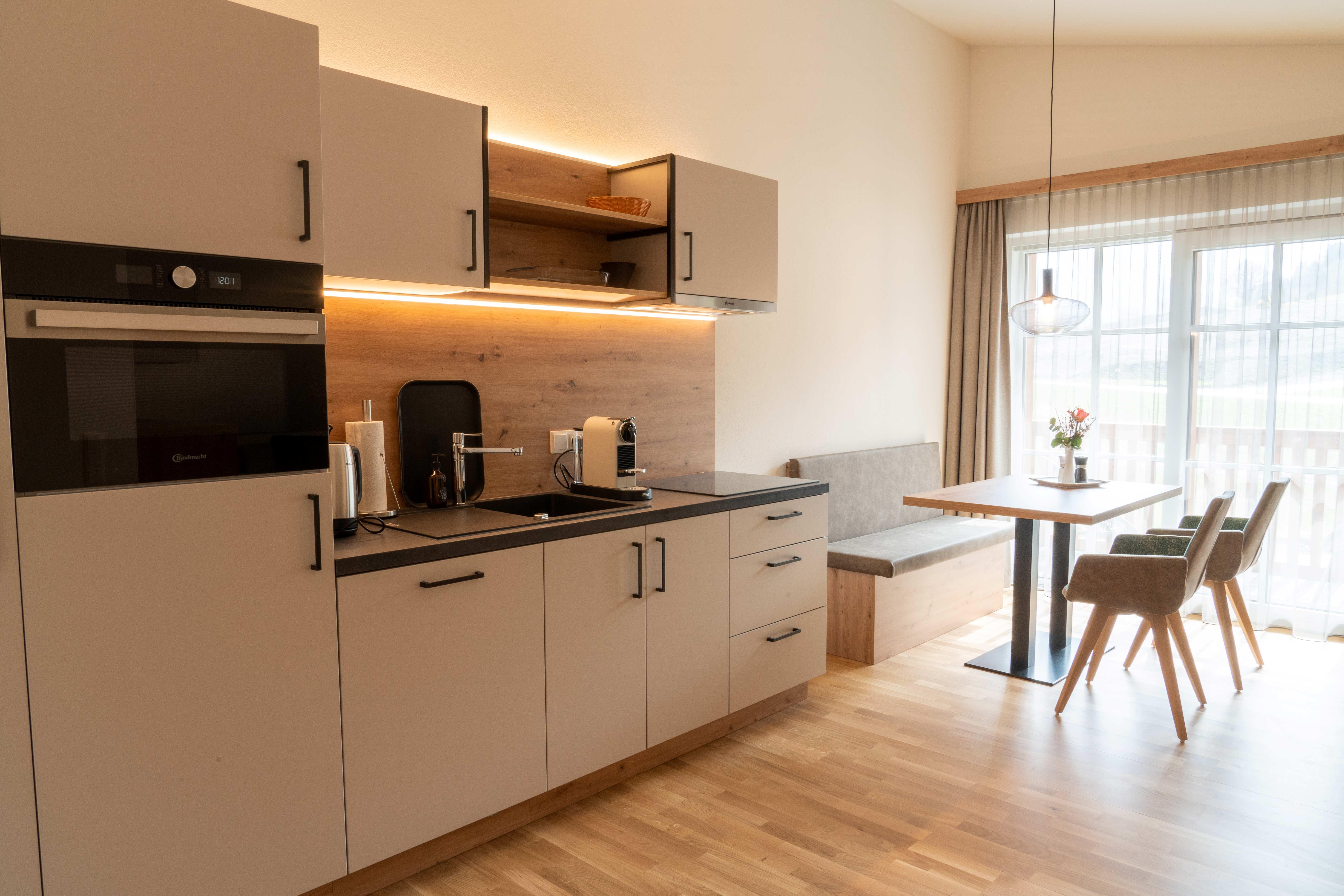 • nagelneuen, topausgestatteten Ferienwohnungen für 1 – 6 Personen mit Wohnküche inkl. „Kitchen-Kit“, 1-2 Schlafzimmern mit hochwertigen „Voglauer“ Betten inkl. Bettwäsche, 1-2 Badezimmern inkl. Handtücher und Haarfön sowie modernen Annehmlichkeiten wie Smart-TV in jedem Zimmer, WLAN, Geschirrspüler, Kühlschrank mit Gefrierfach, Backofen mit Mikrowellenfunktion u.v.m.