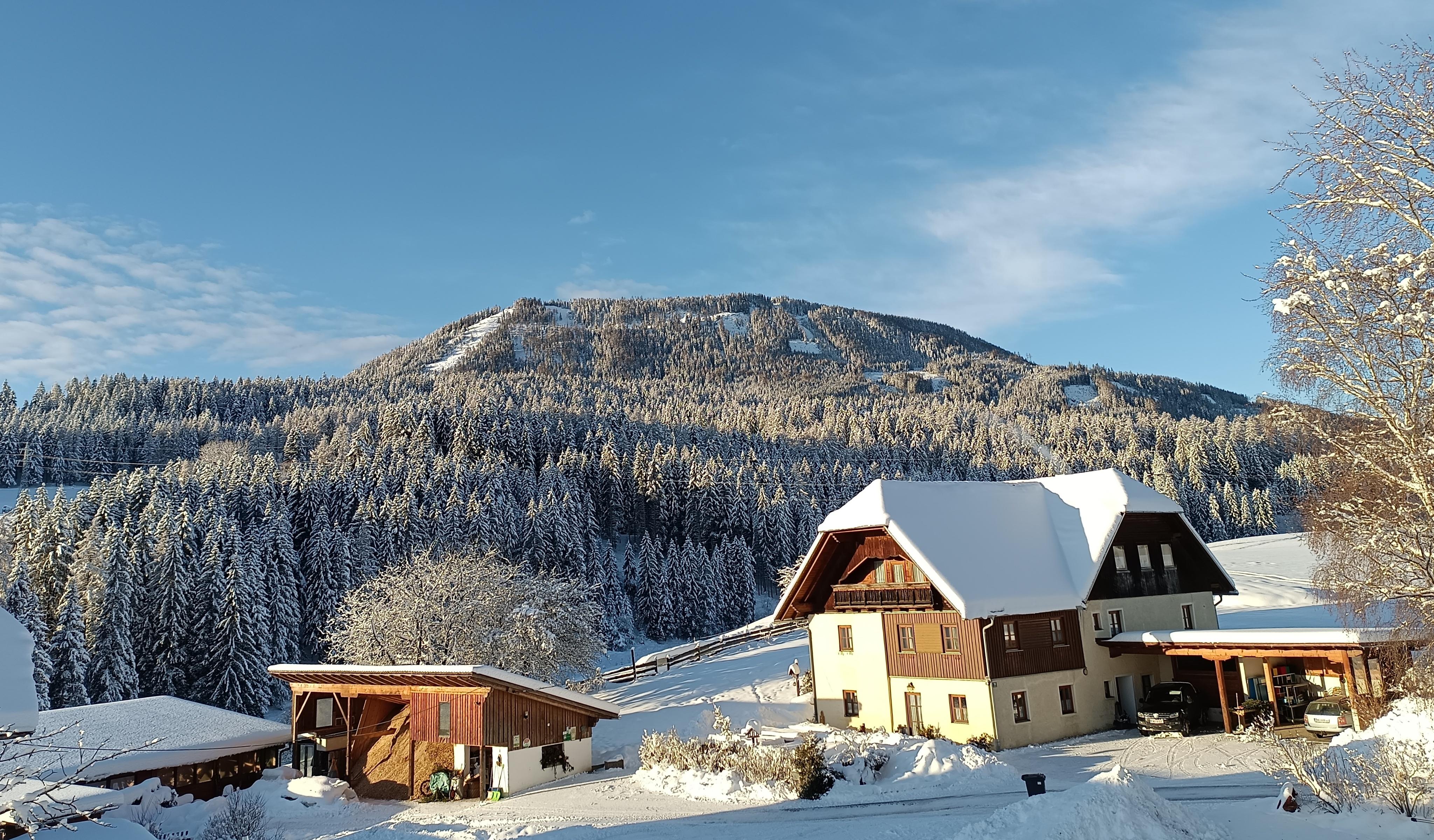 Unser Biobauernof liegt in 950 m Seehöhe in ruhiger Lage. Große, geräumige Wohnungen mit Wintergarten oder Balkon bieten genügend Platz für Ihren Urlaub um durch Wiesen oder Wälder zu wandern, Beeren und Pilze zu sammeln, oder nach einem schönen Schitag in unserer Sauna sich so richtig zu entspannen. Für Ihr Frühstück oder eine Jause können Sie Produkte aus unserer biologischen Landwirtschaft wie: Vollkornbrot, Marmelade, Frischkäse, Speck, Milch, Most, Apfelsaft oder Johannisbeer-Himbeersaft genießen. Markierte Rad- und Wanderwege führen direkt am Hof vorbei. Während Sie auf den Grillabend warten oder selbst grillen, können sich die Kinder am Kinderspielplatz, Volleyball, Tischtennis oder Trampolin mit Sicherheitsnetz vergnügen.