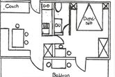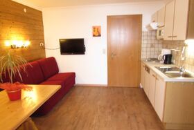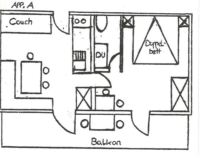 Das Appartement befindet sich im 1. OG und besteht aus einem Schlafzimmer mit Dusche/WC/Balkon und einer gemütlichen, voll ausgestatteten Wohnküche mit einer Küchenzeile, einer Essecke, einer Couch, Kabel-TV, WLAN und Radio.