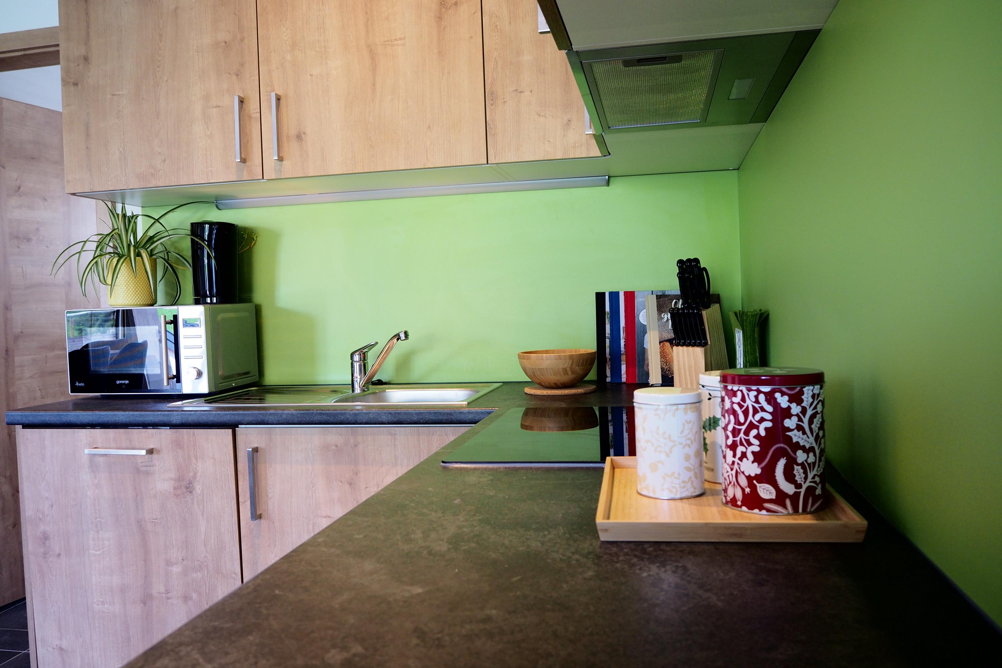 Das Rehbock - Appartement 1 - ca. 70m² ist ebenerdig vom Garten aus erreichbar und verfügt über einen Wohnraum mit Essbereich und reichlich ausgestatteter Küche, sowie Geschirrspüler, E-Herd, Mikrowelle, Wasserkocher, Nespresso-Cafemaschine mit Kapseln. Zwei Doppelzimmer inkl. Bettwäsche und Handtücher und ein gemeinsames Bad (Fön) mit Dusche, WC extra.