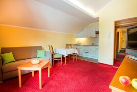 Appartement ca. 40m² bestehend aus einem Wohnraum mit ausziehbarer Couch, Essecke, Kochnische, 1 Schlafzimmer, Bad/WC, Balkon