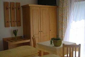 Familienzimmer Schwarzerberg (Zimmer für 1 - 4 Personen) Unser Familienzimmer verfügt über 2 getrennte Schlafräume! Gemütlich eingerichtet mit Vollholzmöbel, Parkettboden, Dusche, Wc, Balkon, 2 Sat-TV!