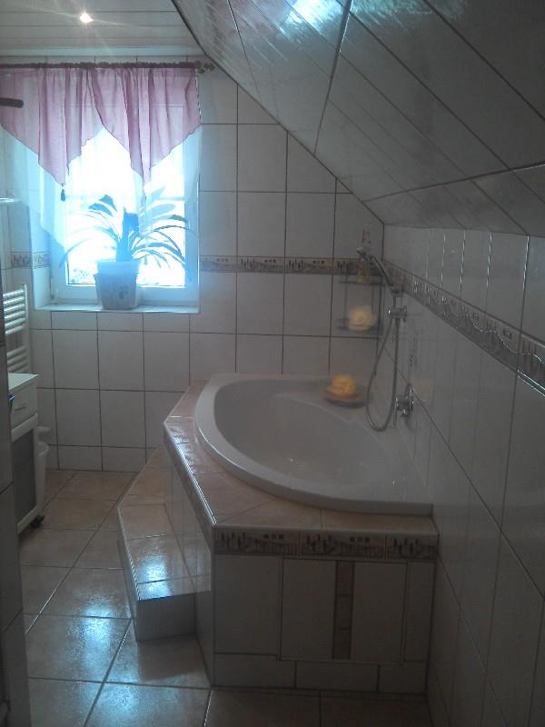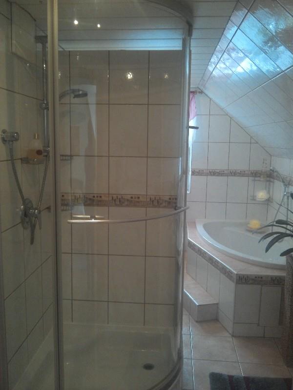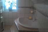Doppelzimmer mit Zustellbett, Gemeinschaftsbad ca. 8,50 m² mit Dusche, Badewanne und WC mit Verbindungstür zum Dreibettzimmer