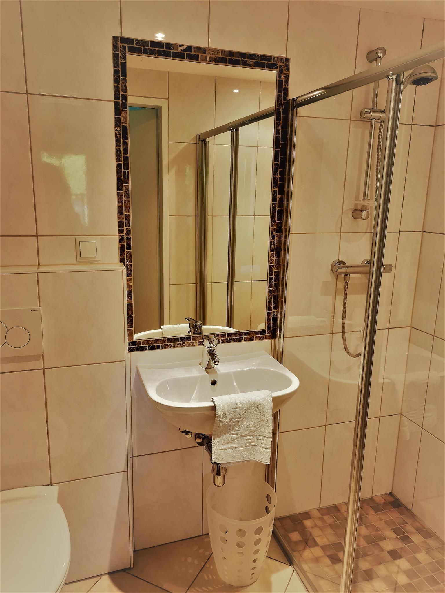 Appartement1: 90m² für max. 8 Personen im Erdgeschoß. Geräumige WohnKüche (mit Geschirrspüler, Backofen/E-Herd, Mikrowelle, Kaffeemaschine, Wasserkocher), gemütliches Wohnzimmer (Schlafmöglichkeit) mit Kabel TV Anschluß und Fernseher. 2 Schlafzimmer, 2 Bäder mit Dusche, 2 WC's. Vorraum mit Garderobe. Kostenloser WI-FI Anschluß. Parkplatz direkt vor dem Ferienhaus vorhanden.