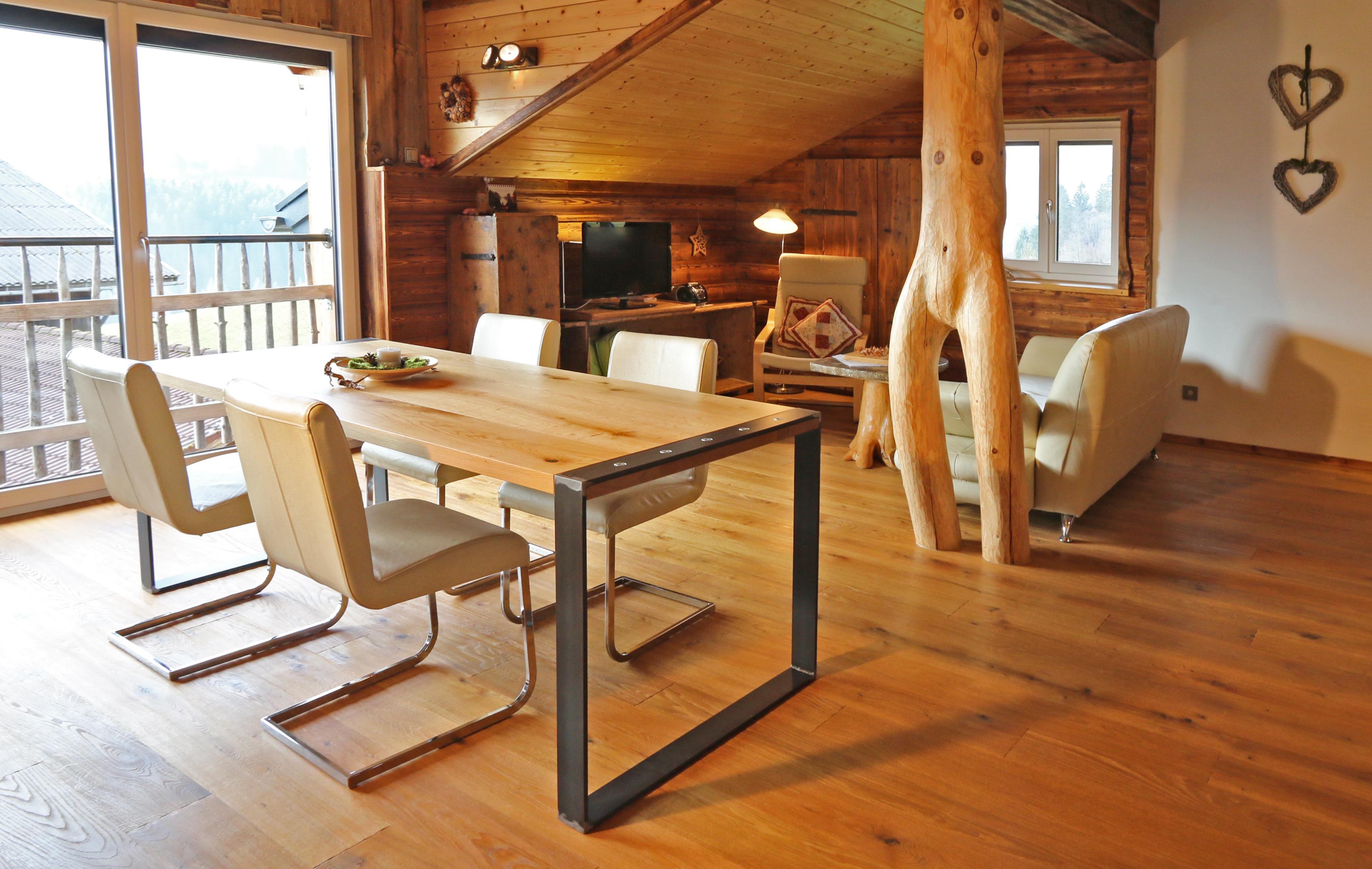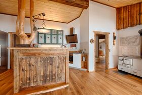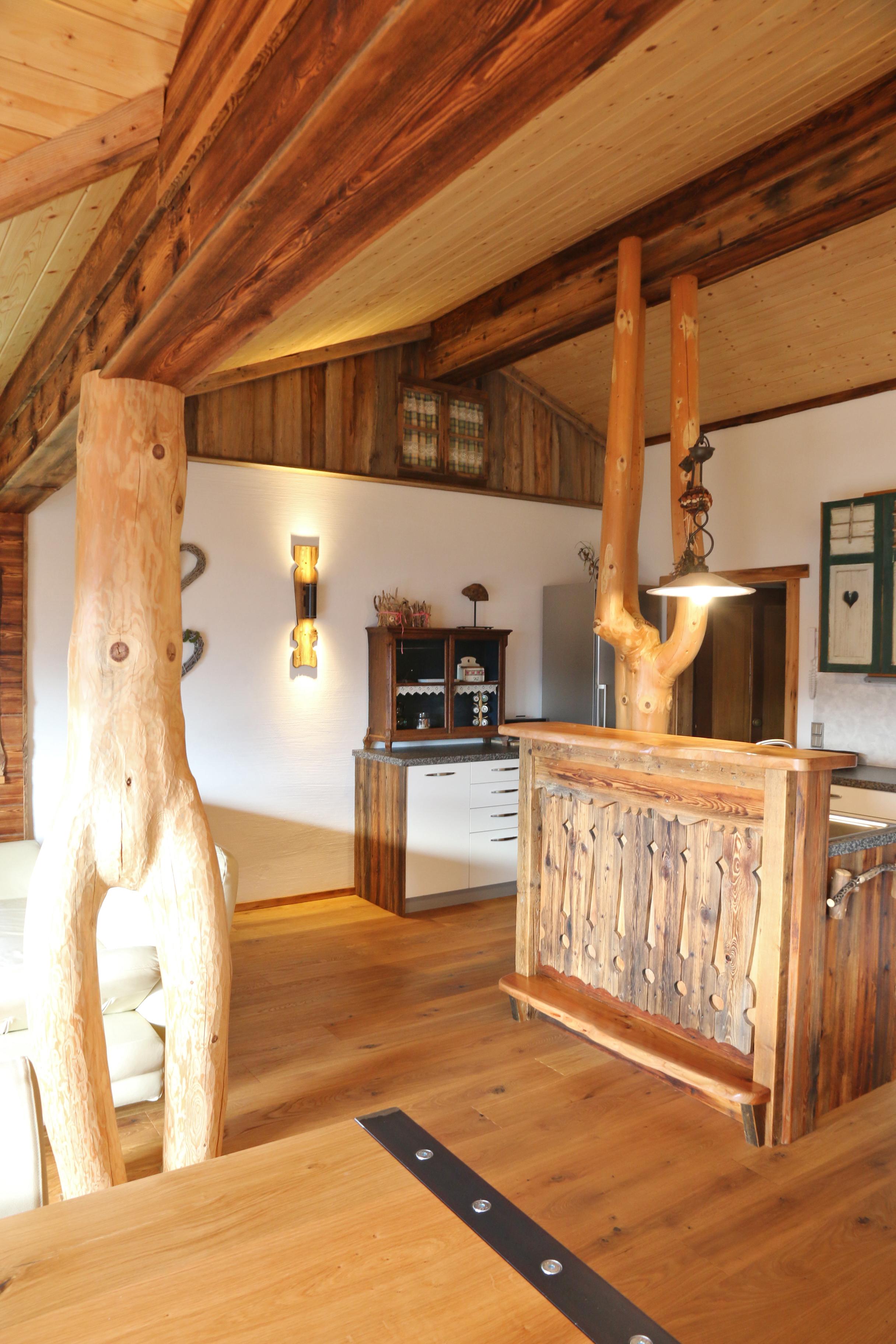 Die wunderschöne Wohnung ist mit sehr viel Liebe zum Detail von den Gastgebern persönlich gebaut und eingerichtet. Die Zirbenholzvertafelungen in den Schlafzimmern und viel Vollholz und Altholz verschaffen Ruhe und Behaglichkeit. In Wohn- und Schlafräumen haben wir hochwertige geölte Naturholzböden. TV, Internetanschluss, Schlafzimmern mit Balkon und Panoramafenster mit herrlichen Blick in unsere schöne Bergwelt. Dusche, Badewanne, Handtücher, Föhn und Bettwäsche sind vorhanden. Die Küche ist voll ausgestattet.