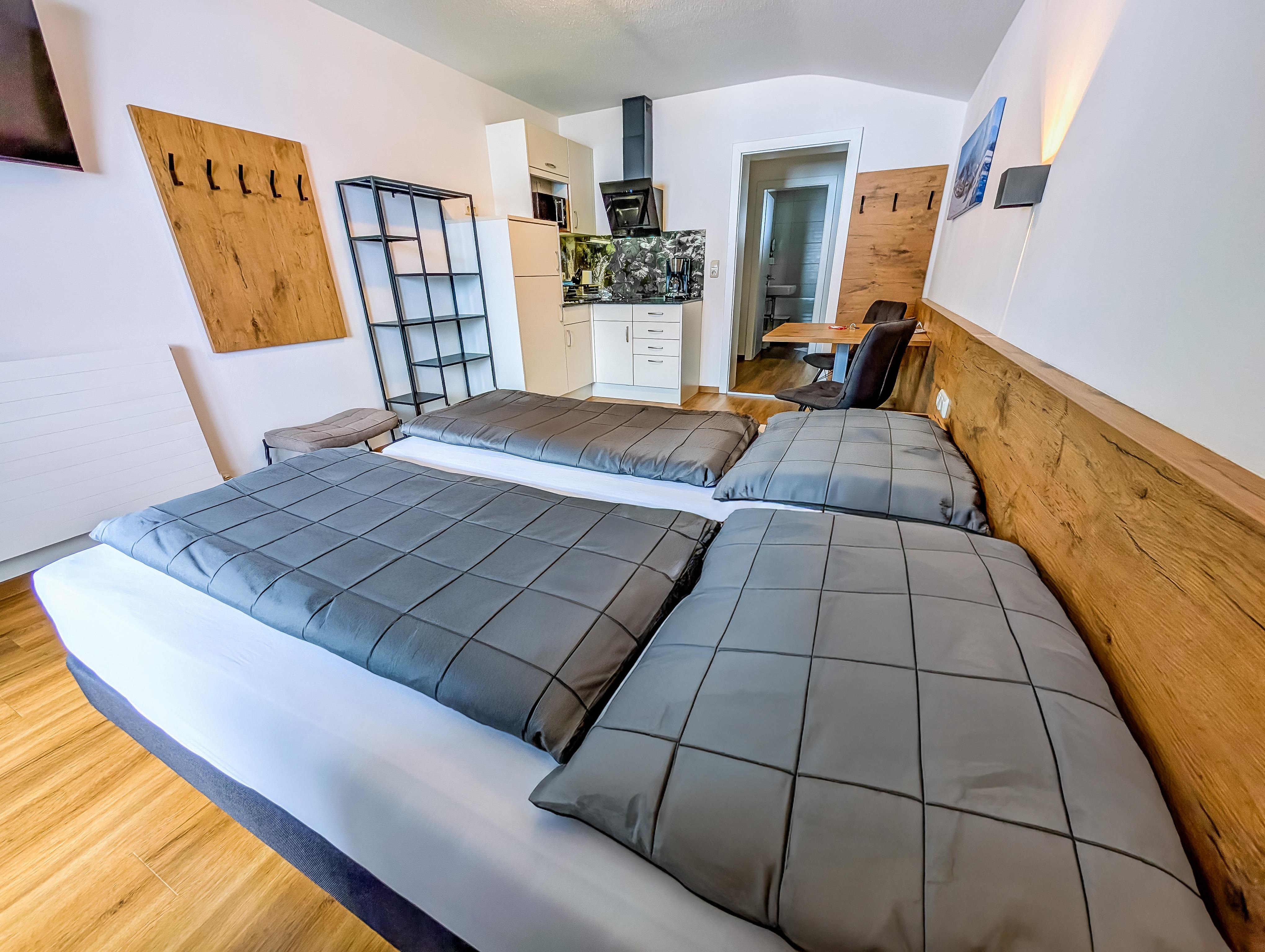 Die zwei Appartements verfügen über Platz für zwei bis vier Personen und sind mit viel Holz ganz gemütlich eingerichtet. Beide Ferienwohnungen sind neu renoviert und mit Kochnische, Essecke, gemütlichen Betten und modernem Badezimmer ausgestattet.
