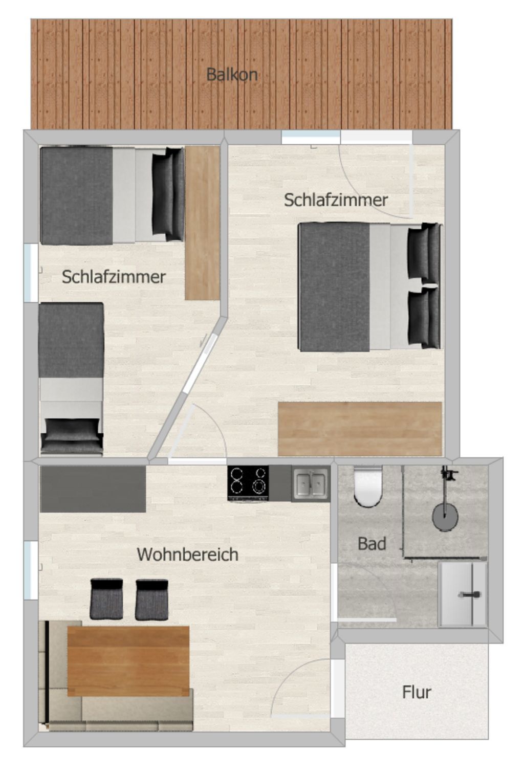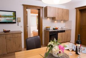 geräumiges Appartement | Wohn- und Essbereich mit gut ausgestatteter Küchezeile| Schlafzimmer mit Doppelbett und Schlafzimmer mit 2 Einzelbetten | Balkon mit wunderschönem Blick auf den Garten
