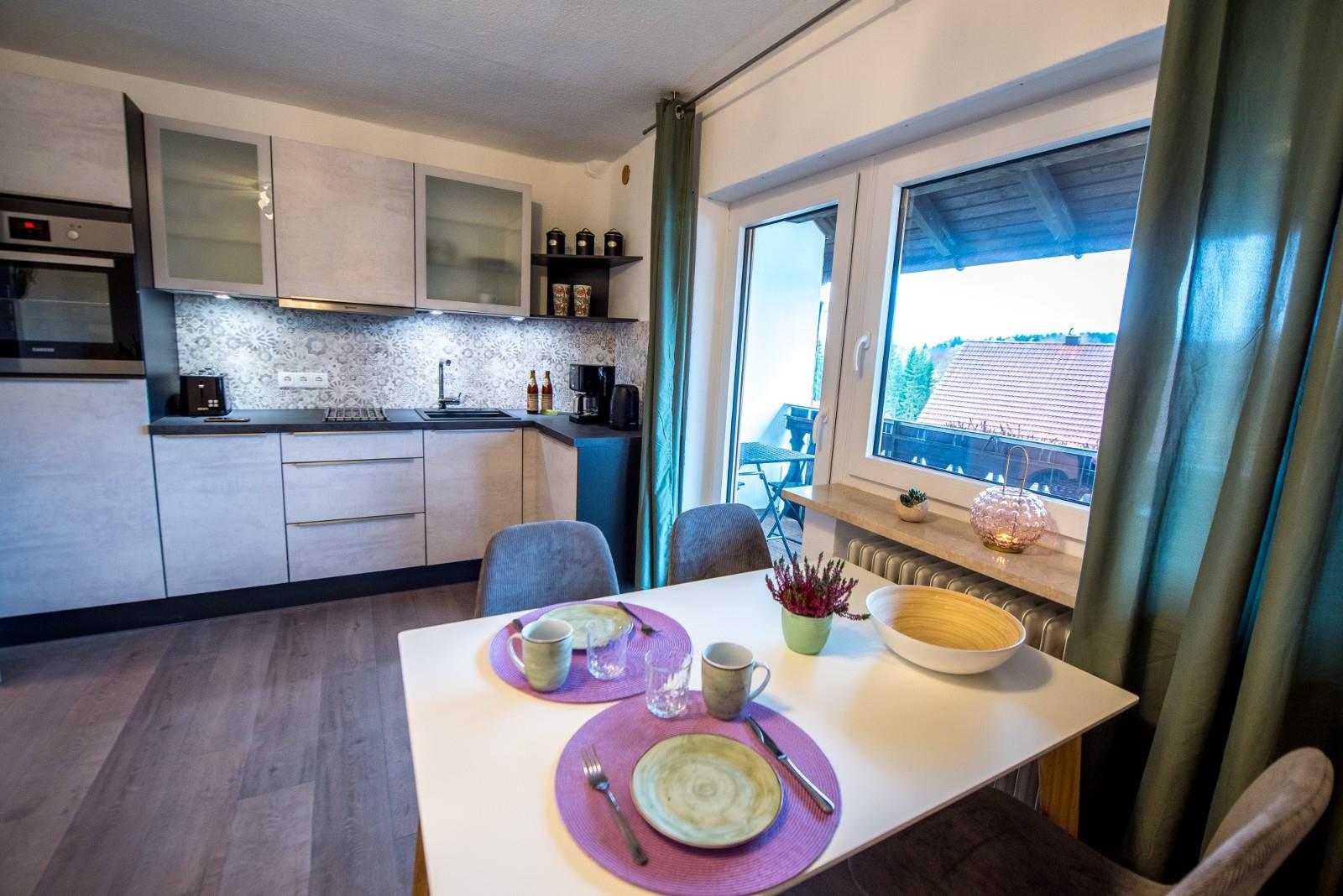 Die neuen Appartements sind mit viel Liebe und hochwertigen Materialien eingerichtet. Die Küche ist vollständig ausgestattet und moderne Küchengeräte sind vorhanden. Die aufeinander abgestimmten Materialien und Farben sind nachhaltig und zusätzlich mit der Regendusche bieten sie Wohnqualität und Wohlfühlfaktoren. Beide Wohnungen haben großzügige, überdachte Balkone. Diese, und die Benutzung der Terrasse bieten Ihnen die Möglichkeit, die Sonne oder auch den Schatten zu jeder Tageszeit aufzusuchen.