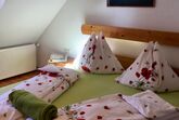 Doppelzimmer mit Bad und WC, Sat-TV, vorwiegend Massivholz, Schafwollteppiche