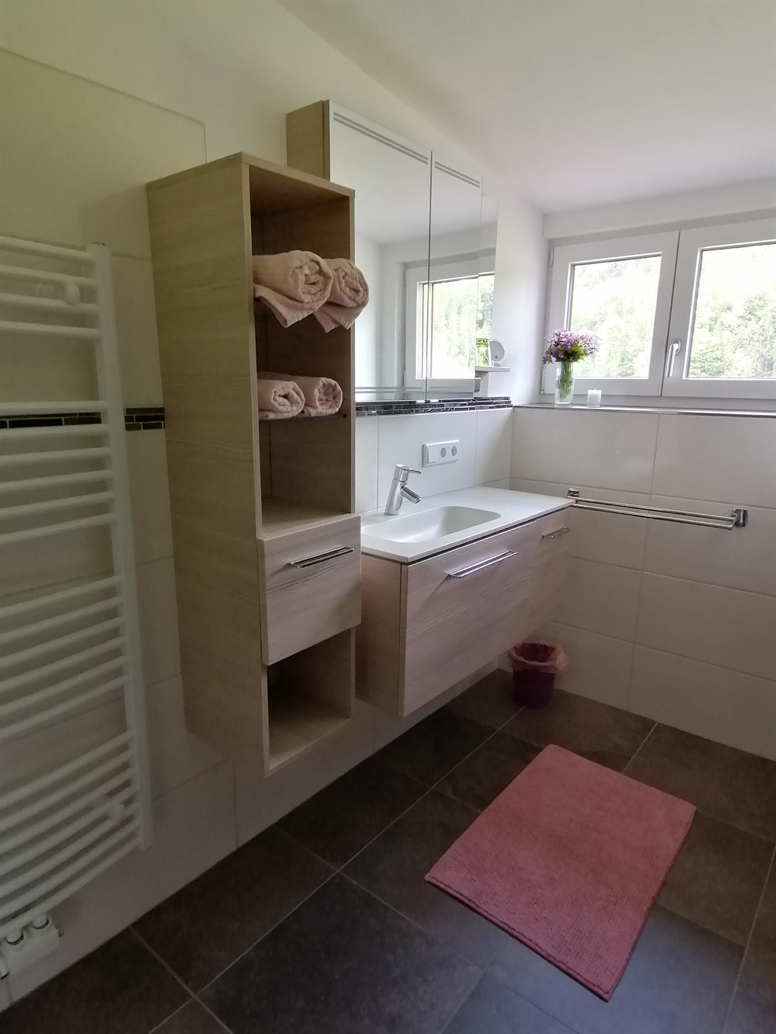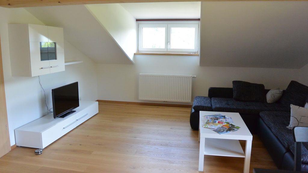 Unsere Ferienwohnung, welche im 2. Stock ist, befindet sich mitten im Grünen in sehr ruhiger Lage.