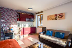 Nach Süden liegendes Einzimmerappartement. Wohnzimmer/Schlafzimmer ist mit einem Doppelbett und mit einem ausziehbaren Sofa eingerichtet. Zu dem Studio gehört eine Essdiele, eine komplett ausgestattete Kochecke, Badezimmer mit Dusche und eine Terrasse (7m2). Eigene Sauna im Appartement. TV ist für Internetbenutzung geeignet: kostenloses Internet, TV Kanäle. Im Erdgeschoss befindet sich pro Appartement ein Abstellraum. Parkmöglichkeit vor dem Gebäude. 2-4 Personen (34 m2) Gesamtanzahl der Studio Plus Appartements: 3 Ausstattung: Wohnzimmer: LCD TV ( mit Internetanschluss), Tastatur, Sofa, Couchtisch; Küche: Elektroherd mit Zerankochfläche (2 Platten), Geschirspühler, Tellerset, Tafelgeschirr, Gläser, Topfset, Mikrowelle, Toaster, Kaffeemachine, Wasserkocher, Kühlschrank/Gefrierfach, Korkenzieher; Badezimmer: Dusche, Föhn, Handtücher; Sauna: Wassereimer, Löffel; Bettwäsche. Mindestaufenthalt: 3 Nächte