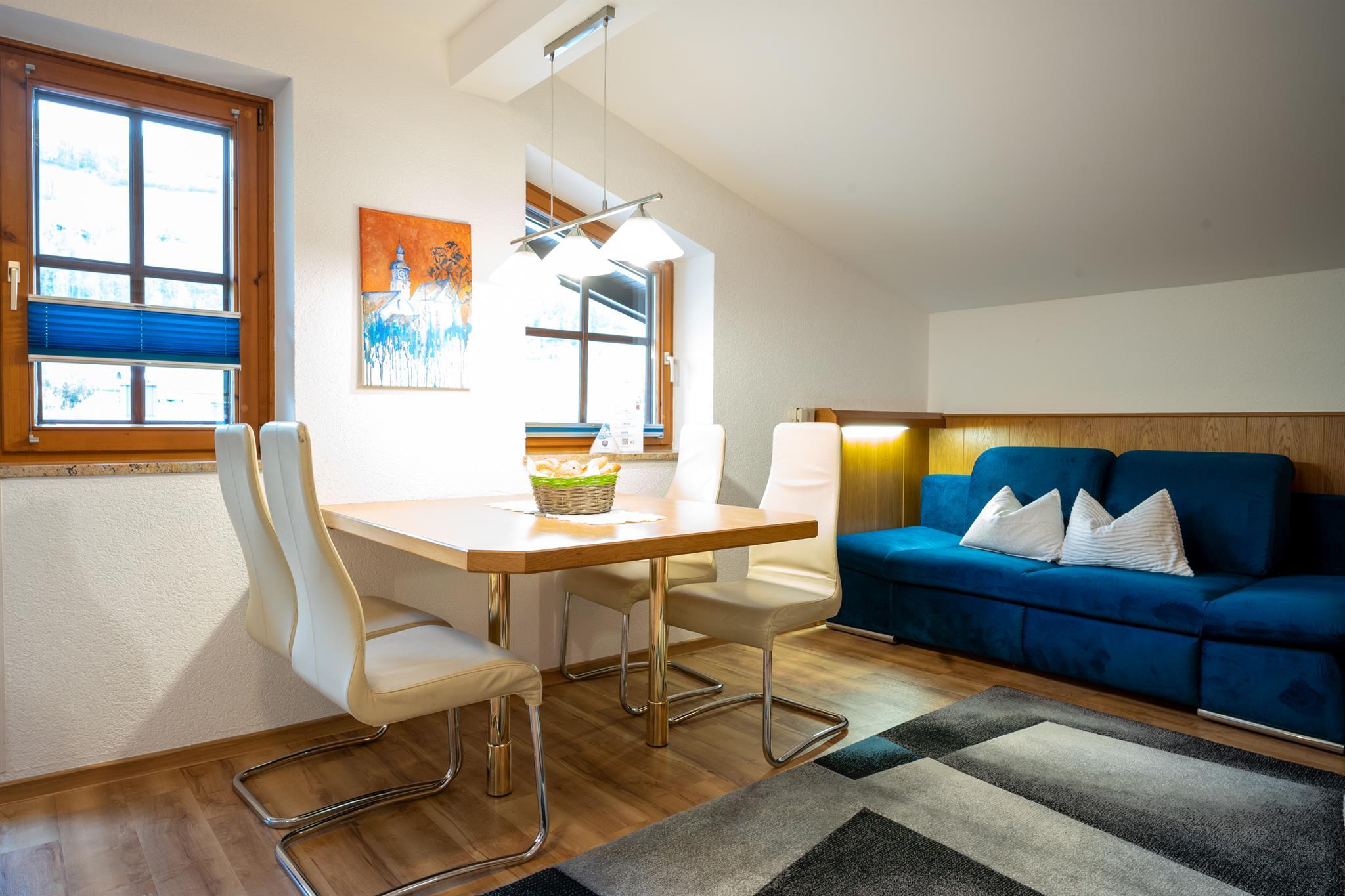 Natürlich herzlich lädt Sie ein großer Balkon mit Liegestühlen und Blick auf den Maiskogel zu erholsamen Stunden ein. In der gemütlichen Wohnküche bereiten Sie für ihre liebsten köstliche Speisen zu oder verbringen einfach nur einen geselligen Abend. Das Apartment-Maiskogelblick bietet Ihnen: Balkon Kostenloses WiFi Wohnküche mit ausziehbarer Couch Badezimmer mit Dusche 1 separates WC 1 Schlafzimmer 2 TV Radio/Telefon