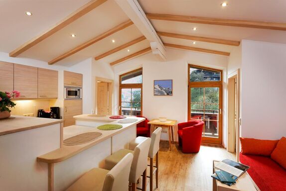 Geniessen Sie vom Balkon den schönen Ausblick auf die Berge des Nationalparks Hohe Tauern. Die große, voll ausgestattete Wohnküche verfügt über eine Bar mit Barhockern, Esstisch und eine Sitzgruppe mit Sofa. Die beiden Schlafzimmer sind mit Flachbild-Sat-TV ausgestattet und haben je ein separates Bad mit großer Dusche und WC. W-LAN ist im gesamten Haus kostenfrei verfügbar.