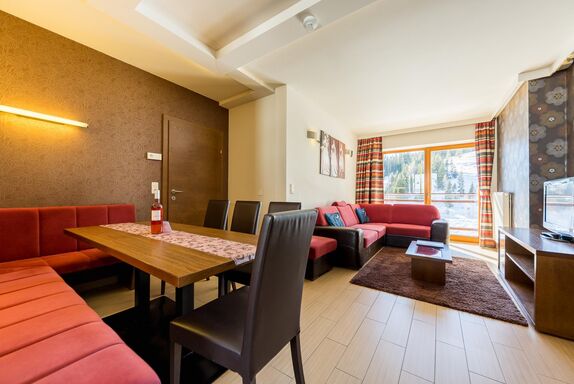 Direkt im Skigebiet In den drei Häusern vom 4+ Sterne Sissi Park erwarten Sie 22 einladende, exklusiv eingerichtete Appartements und zusätzlich 2 Zweibettzimmer und 1 Dreibettzimmer. Sie können das wundervolle Panorama der malerischen Gebirgslandschaft von Ihrer eigenen, südlich liegenden Terrasse genießen. Fast alle unserer Appartements haben eine Sauna im Badezimmer. Jedes Appartement ist mit einem für Internetbenutzung geeigneten LCD TV Gerät ausgestattet. Wifi ist in allen Räumen kostenlos verfügbar. Genießen Sie die gesunde, Pollenfreie Alpenluft, auf einer Höhe von 1650 M. Verpflegung: Frühstück, Abendessen und á la carte kann in unserem Restaurant in Anspruch genommen werden. Die Frühstücksbrötchen werden im Hause frisch gebacken. Rezeption: Bei Fragen wenden Sie sich bitte an unsere Rezeption. Sie können Deutsch, Englisch, oder Ungarisch informiert werden. Internet/TV: Jedes Appartement ist mit einem TV (Deutsch, Englisch und Ungarische Kanäle) ausgestattet. Kostenloses W-LAN im jeden Appartement! Baby Zubehör: Kinderbett und Bettwäsche, Wanne, Hochstuhl, Wickeltisch. Bitte sagen Sie uns noch vor Ankuft Bescheid falls Sie etwas von diesen Sachen benötigen! Parken: Kostenloses Parken vor den Appartements. Alle Appartements sind Nichtraucher-Appartements, Haustiere sind nicht erlaubt.