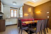 Nach Süden liegendes Appartement mit Wohnzimmer und vier separaten Schlafzimmern. Das Wohnzimmer beinhaltet eine Essdiele, eine komplett ausgestattete Kochecke und zwei Badezimmer mit Dusche. Zum Appartement gehört auch eine Terrasse (16 m2). Eigene Sauna im Appartement. TV ist für Internetbenutzung geeignet: kostenloses Internet, TV Kanäle. Im Erdgeschoss befindet sich pro Appartement ein Abstellraum. Parkmöglichkeit vor dem Gebäude. 8-10 Personen (88 m2) Gesamtanzahl der Premium Appartements: 4 Das Premium Appartement ist ideal für 2 Familien, weil die jeweils 2 Schlafzimmern sich an den 2 Endes des Appartements befinden. Ausstattung: Wohnzimmer: LCD TV ( mit Internetanschluss), Tastatur, Sofa, Couchtisch; Küche: Elektroherd mit Zerankochfläche (4 Platten), Ofen, Geschirrspühler, Tellerset, Tafelgeschirr, Gläser, Topfset, Mikrowelle, Toaster, Kaffeemachine, Wasserkocher, Kühlschrank/Gefrierfach, Korkenzieher; Badezimmer: Dusche, Föhn, Handtücher; Sauna: Wassereimer, Löffel; Bettwäsche. Mindestaufenthalt: 3 Nächte