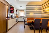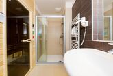 Appartement mit Wohnzimmer und zwei separaten Schlafzimmern. Das Wohnzimmer beinhaltet eine Essdiele, eine komplett ausgestattete Kochecke. Zum Appartement gehört auch eine Terrasse (13 m2). Zwei Badezimmer mit Dusche Eigene Sauna im Appartement. TV ist für Internetbenutzung geeignet: kostenloses Internet, TV Kanäle. Im Erdgeschoss befindet sich pro Appartement ein Abstellraum. Parkmöglichkeit vor dem Gebäude. 4-6 Personen (66 m2) Gesamtanzahl der Grand Appartements: 9 Ausstattung: Wohnzimmer: LCD TV ( mit Internetanschluss), Tastatur, Sofa, Couchtisch; Küche: Elektroherd mit Zerankochfläche (4 Platten), Ofen, Geschirrspühler, Tellerset, Tafelgeschirr, Gläser, Topfset, Mikrowelle, Toaster, Kaffeemachine, Wasserkocher, Kühlschrank/Gefrierfach, Korkenzieher; Badezimmer: Dusche, Föhn, Handtücher; Sauna: Wassereimer, Löffel; Bettwäsche. Mindestaufenthalt: 3 Nächte