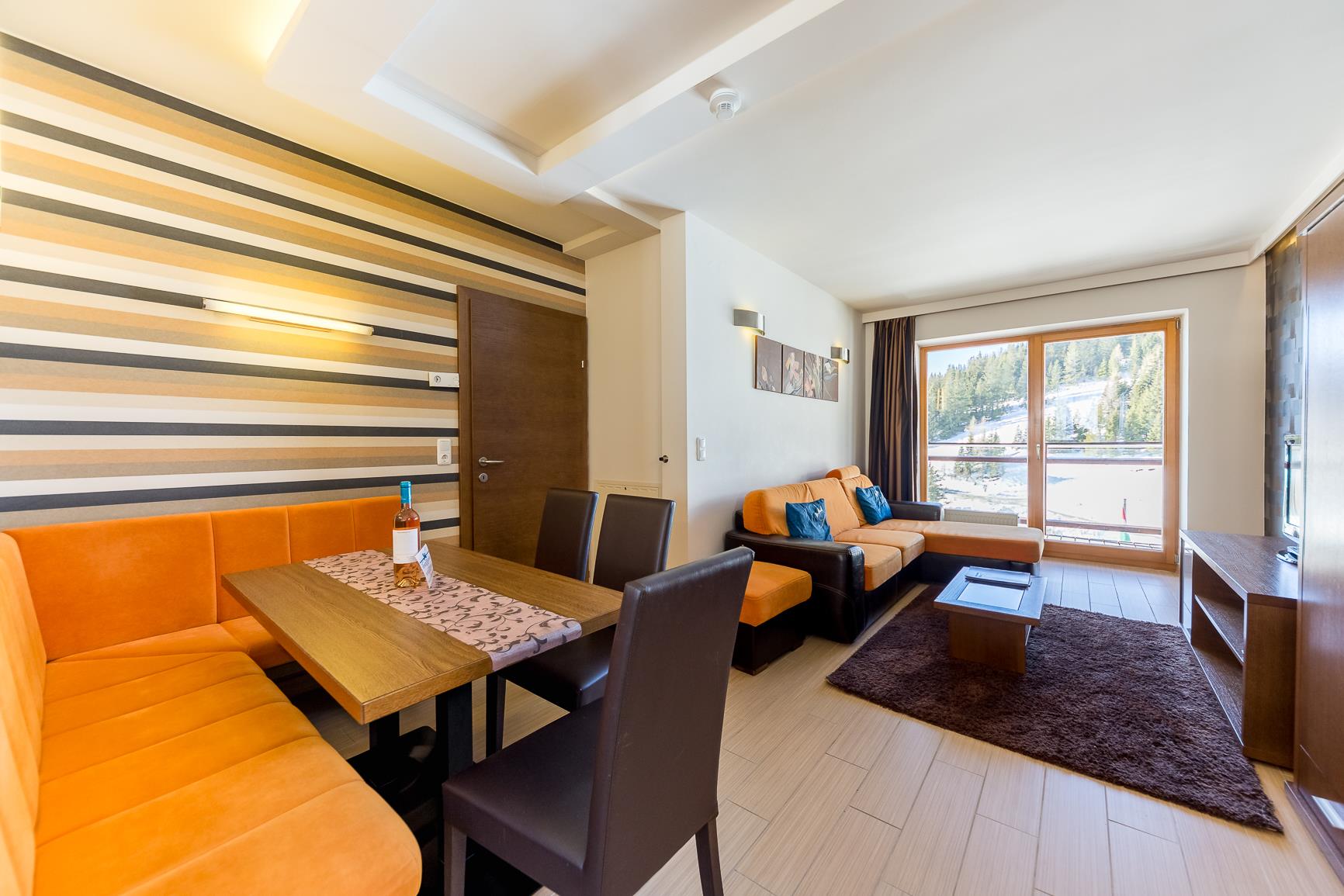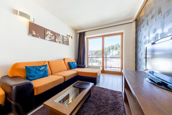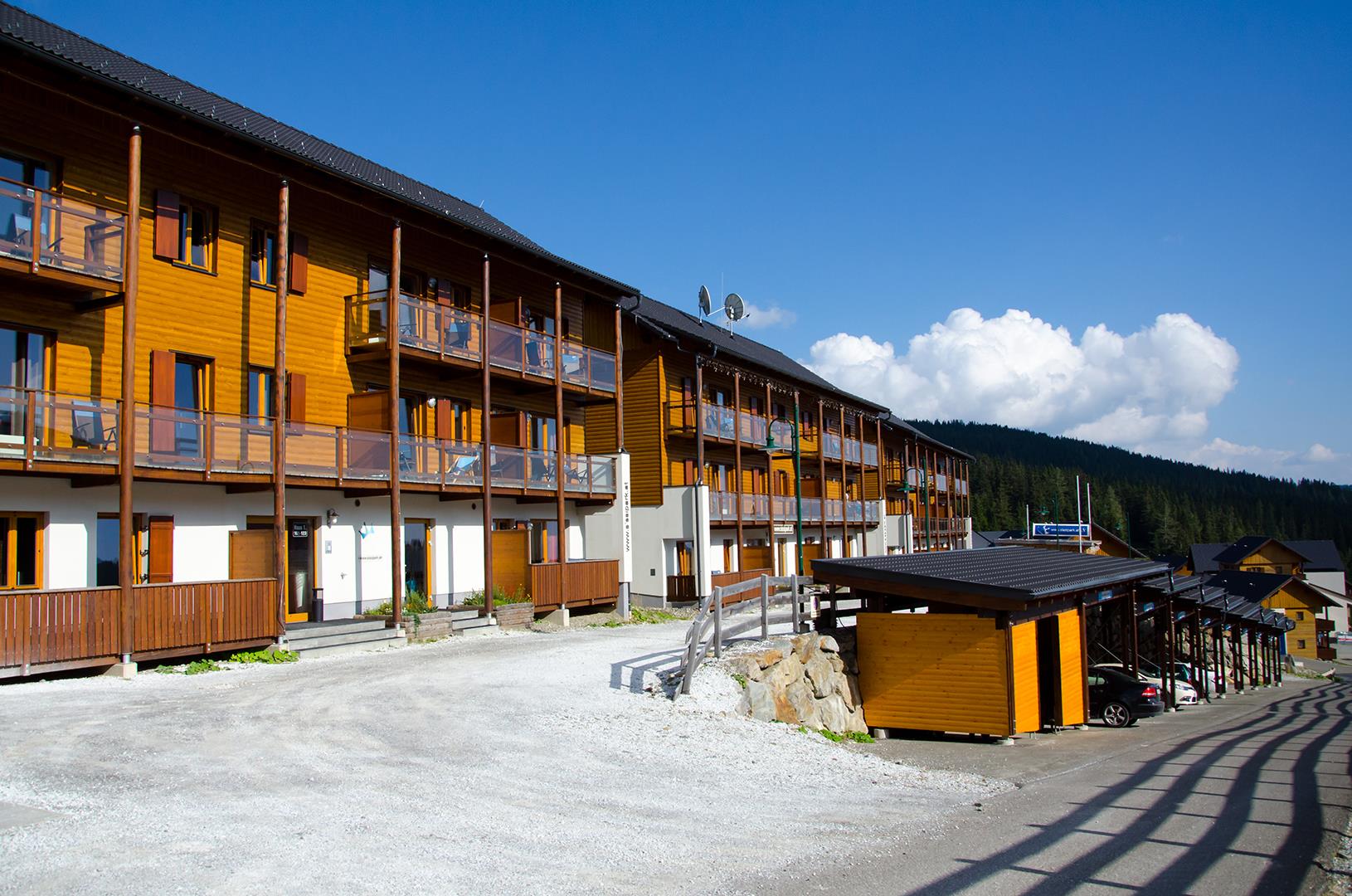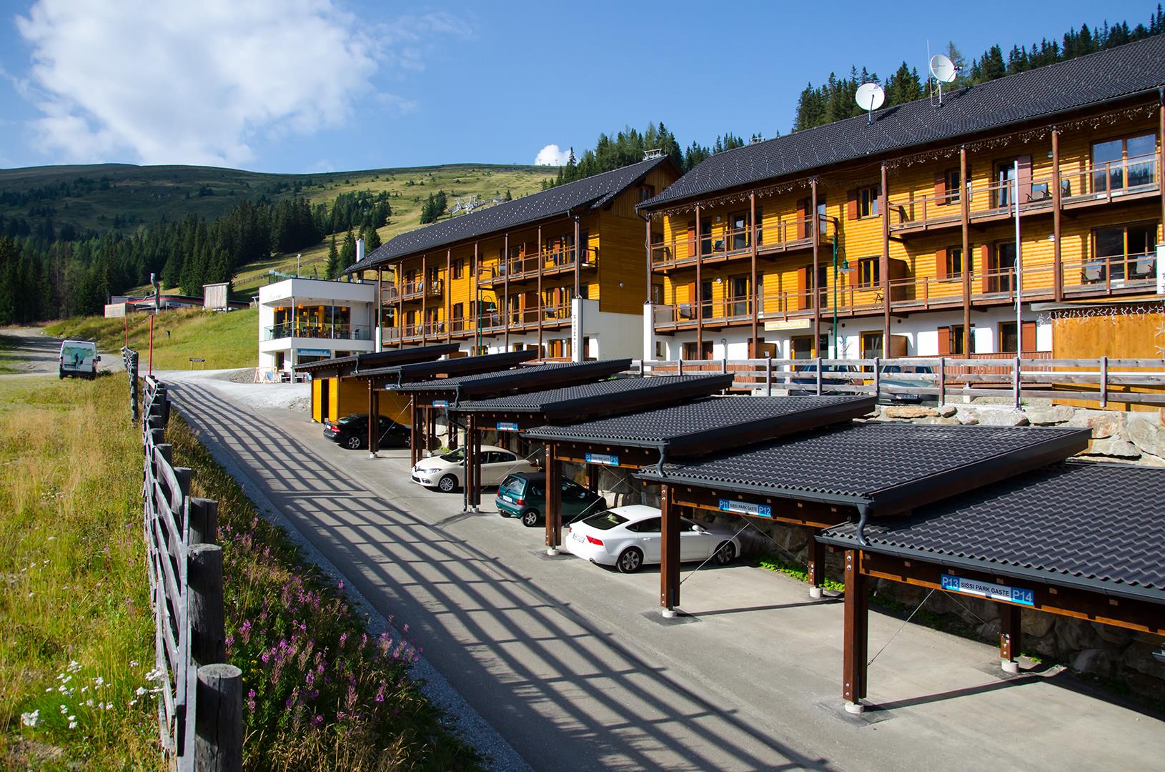 Direkt im Skigebiet In den drei Häusern vom 4+ Sterne Sissi Park erwarten Sie 22 einladende, exklusiv eingerichtete Appartements und zusätzlich 2 Zweibettzimmer und 1 Dreibettzimmer. Sie können das wundervolle Panorama der malerischen Gebirgslandschaft von Ihrer eigenen, südlich liegenden Terrasse genießen. Fast alle unserer Appartements haben eine Sauna im Badezimmer. Jedes Appartement ist mit einem für Internetbenutzung geeigneten LCD TV Gerät ausgestattet. Wifi ist in allen Räumen kostenlos verfügbar. Genießen Sie die gesunde, Pollenfreie Alpenluft, auf einer Höhe von 1650 M. Verpflegung: Frühstück, Abendessen und á la carte kann in unserem Restaurant in Anspruch genommen werden. Die Frühstücksbrötchen werden im Hause frisch gebacken. Rezeption: Bei Fragen wenden Sie sich bitte an unsere Rezeption. Sie können Deutsch, Englisch, oder Ungarisch informiert werden. Internet/TV: Jedes Appartement ist mit einem TV (Deutsch, Englisch und Ungarische Kanäle) ausgestattet. Kostenloses W-LAN im jeden Appartement! Baby Zubehör: Kinderbett und Bettwäsche, Wanne, Hochstuhl, Wickeltisch. Bitte sagen Sie uns noch vor Ankuft Bescheid falls Sie etwas von diesen Sachen benötigen! Parken: Kostenloses Parken vor den Appartements. Alle Appartements sind Nichtraucher-Appartements, Haustiere sind nicht erlaubt.