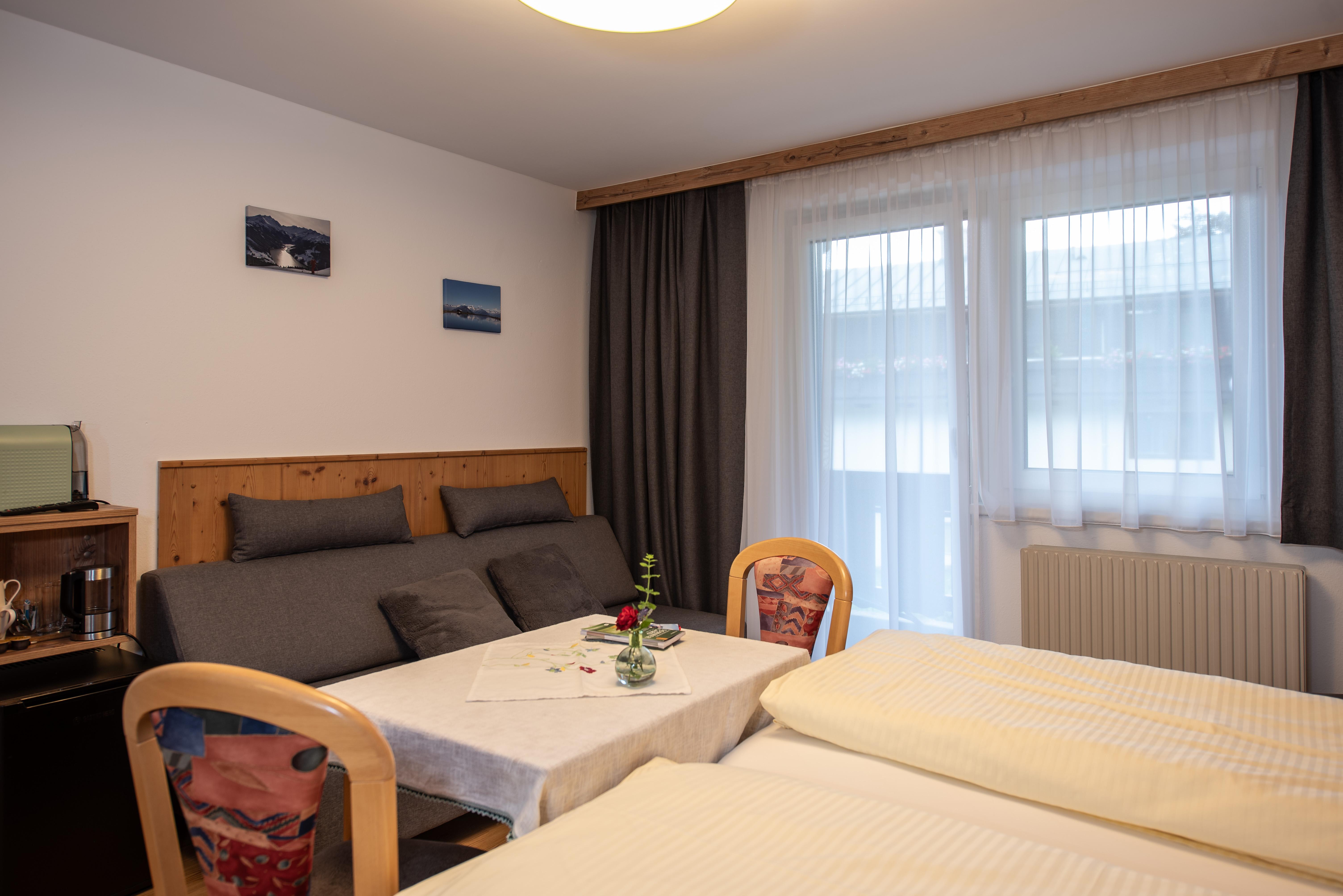 Neues sehr schön ausgestattetes Doppelzimmer mit Dusche/WC, Kabel-TV, großem Balkon und Sofa. Weiters ist das Zimmer mit Kühlschrank, Wasserkocher und Tabsmaschine versehen.