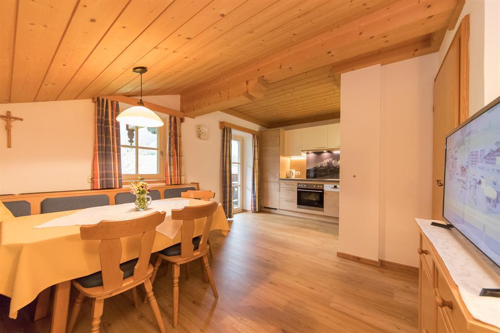 Die Ferienwohnung im ersten Stock verfügt über eine große Terrasse, Wohnküche, Bad, 2 Schlafzimmer, separate Toilette, Balkon, 2 Schlafzimmer für 1-6 Personen.