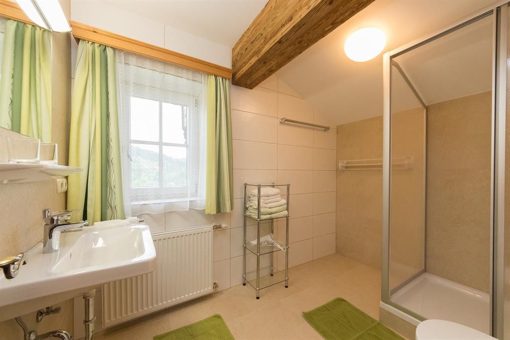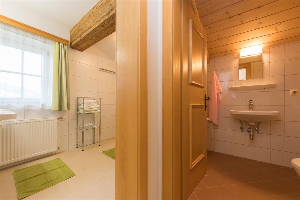 Die Wohnung im 2 Stock verfügt über eine Wohnküche, Bad, Vorraum, 2 Schlafzimmer für 2-6 Personen, separate Toilette, 2 Balkone