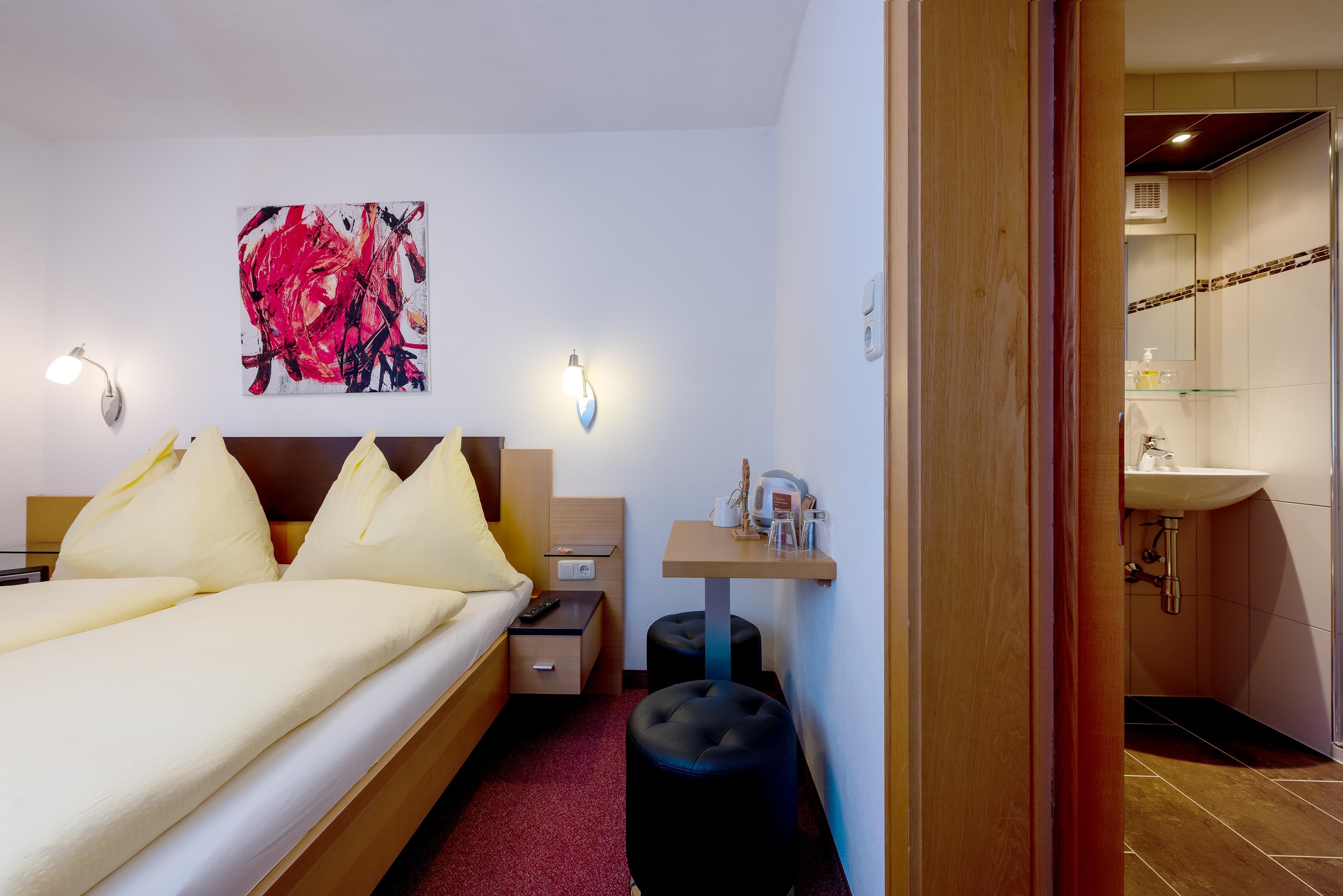 Das gemütliche Einzelzimmer mit eigenem Balkon und herrlichem Blick auf die umliegende Bergwelt.