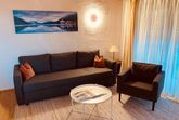 Ferienwohnung : 60m², 4-6 Personen, 2 Schlafräume, 1 Wohnschlafraum m. Küche u. Essplatz, TV , Balkon, DU/WC.