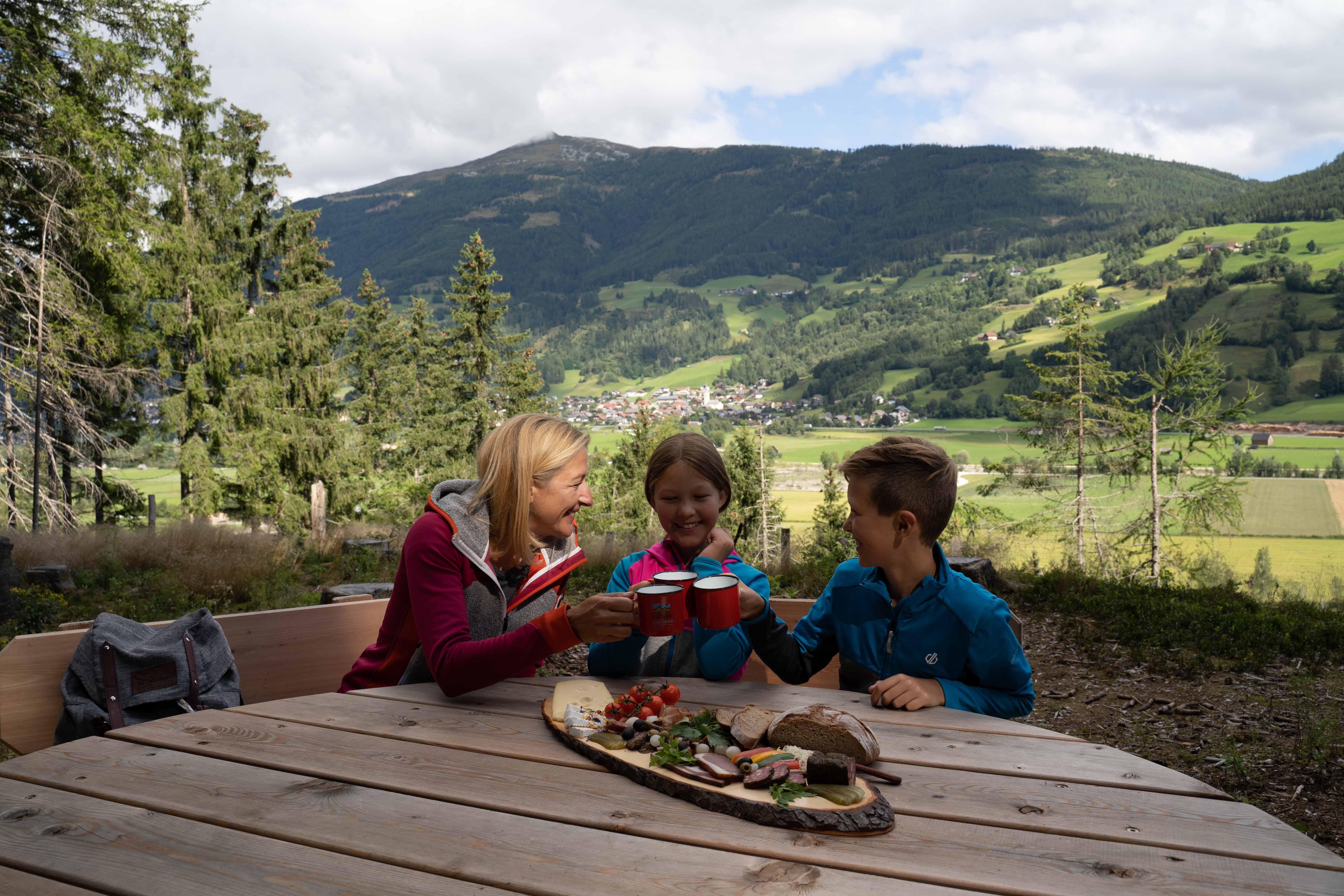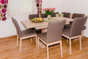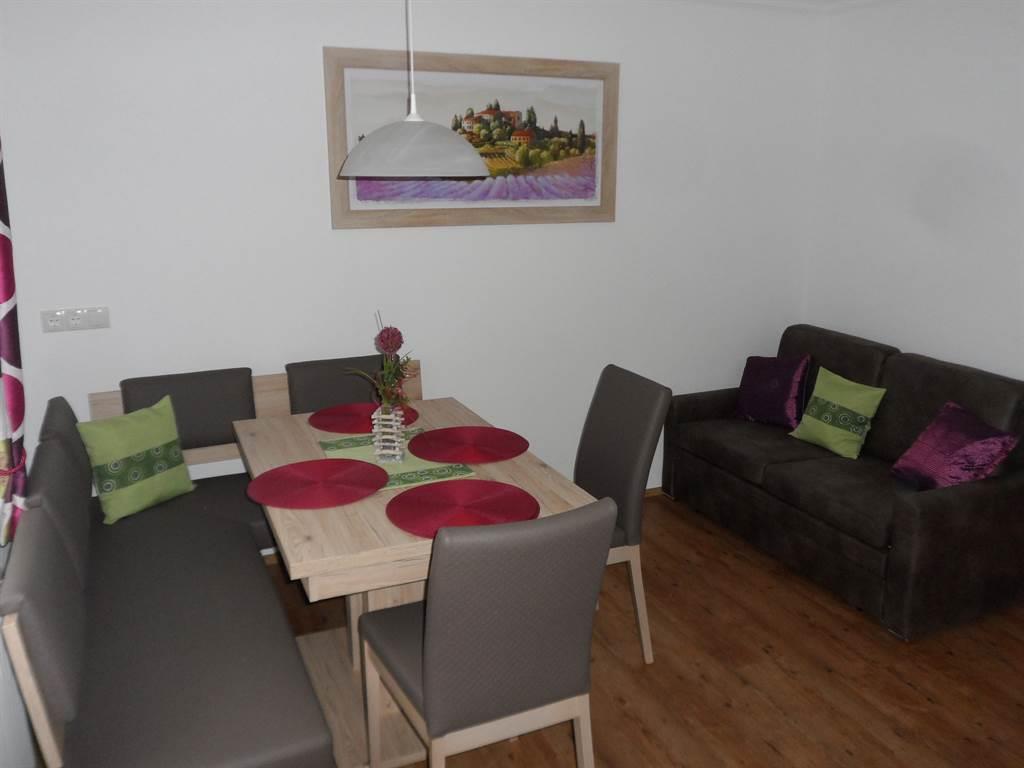 Unser Haus liegt am Ortsrand in ruhiger Lage, 100 Meter von der Landstraße entfernt. Radweg führt direkt vor dem Haus vorbei. Die Ferienwohnung verfügt über 70 m². Eingang im Erdgeschoß mit Treppe zur 1. Etage. Wohnraum mit Couch, Küchenzeile, Essecke, Flat-TV. 2 Doppelzimmer und 1 Einbettzimmer. 2 Duschen mit WC . Alle Zimmer mit TV und Balkon. Gartenbereich mit Terrasse. Schöner Blick auf die umliegenden Berge. Zum Hauptort St. Michael 3 km entfernt. Brötchenservice, kostenloser Parkplatz, Bushaltestelle 100m entfernt.