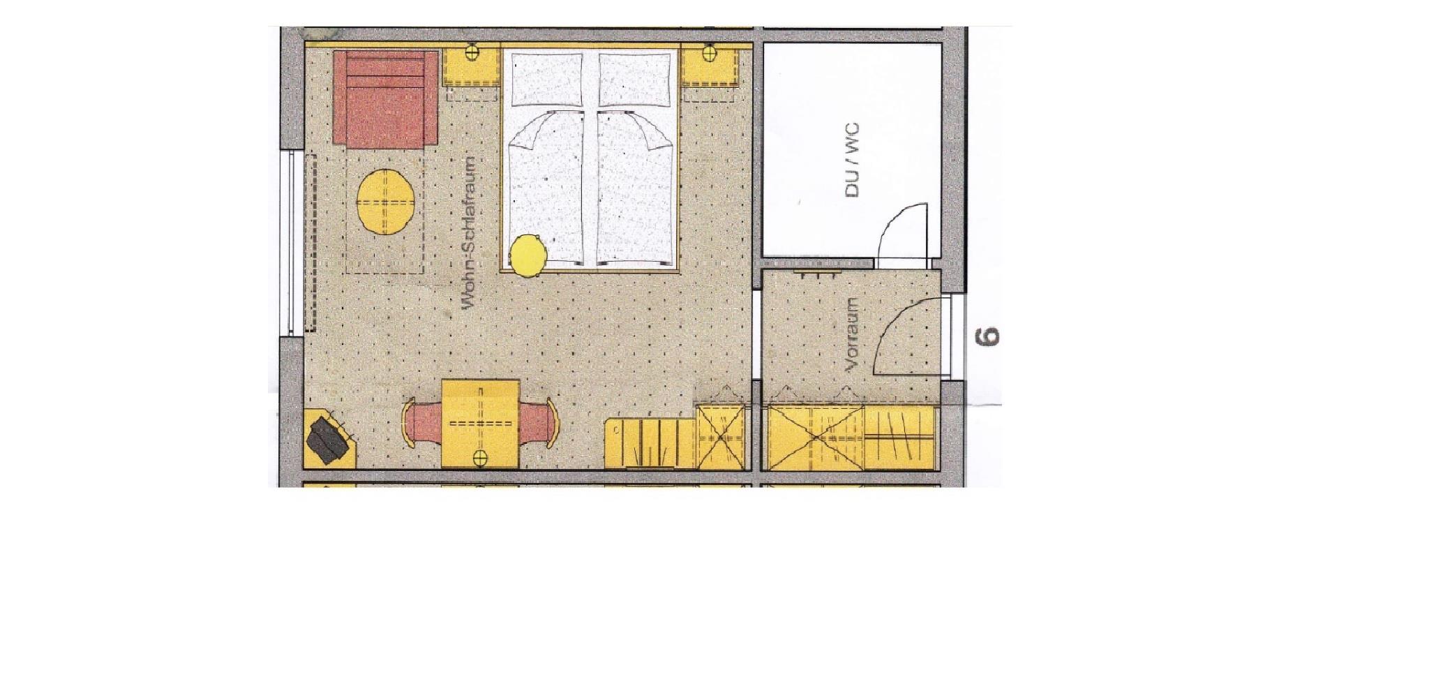 • die Größe des Zimmers beträgt ca. 25m²,