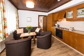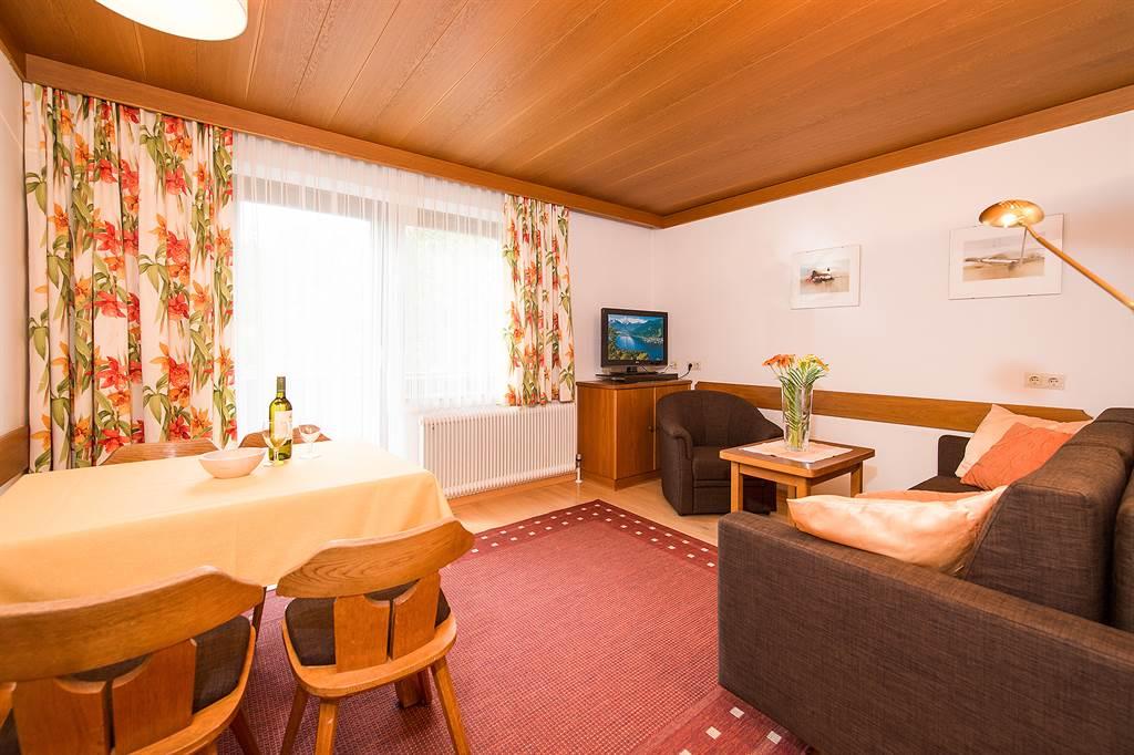 Das Appartement hat ein Schlafzimmer mit Doppelbett (neue Zirbenbetten in Komfort-Liegehöhe und hochwertigen Matratzen), ein Wohn/Schlafzimmer mit ausziehbarer Couch, eine kleine Küche, ein Badezimmer, Vorraum und Balkon. Es ist ausgestattet mit Kochgeschirr, 2 x digitaler Kabel-TV, Haartrockner, Telefon und Safe. Bettwäsche und Handtücher sind vorhanden.