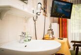 Ruhig gelegenes, schön ausgestattetes Zimmer mit Fließwasser ( Dusche und WC befinden sich am Gang ) teilweise Balkon, Kabel TV und Wasserkocher.