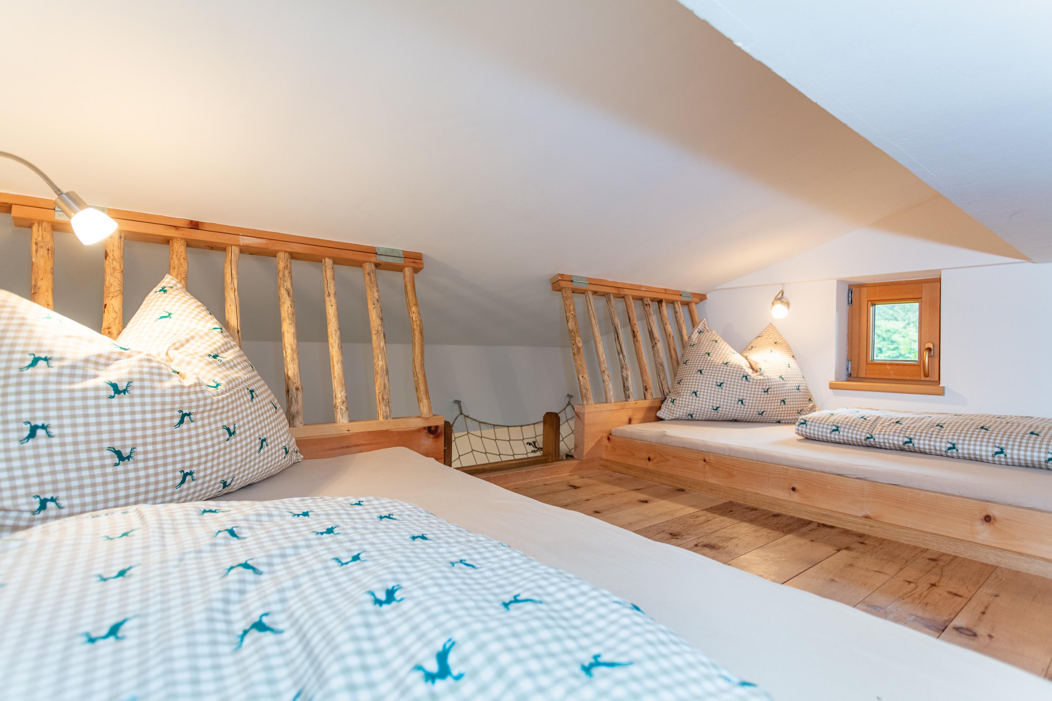 Unser Ferienhaus liegt auf 1130m Seehöhe in wunderbar ruhiger und sonniger Alleinlage. Das 115m² große Ferienhaus, in dem 8 Personen Platz finden, verfügt über eine komplett ausgestattete Küche, Wohnzimmer, drei Doppelzimmer (eines ist zusätzlich mit einer Mansarde mit zwei Einzelbetten ausgestattet), ein Bad und ein seperates WC.