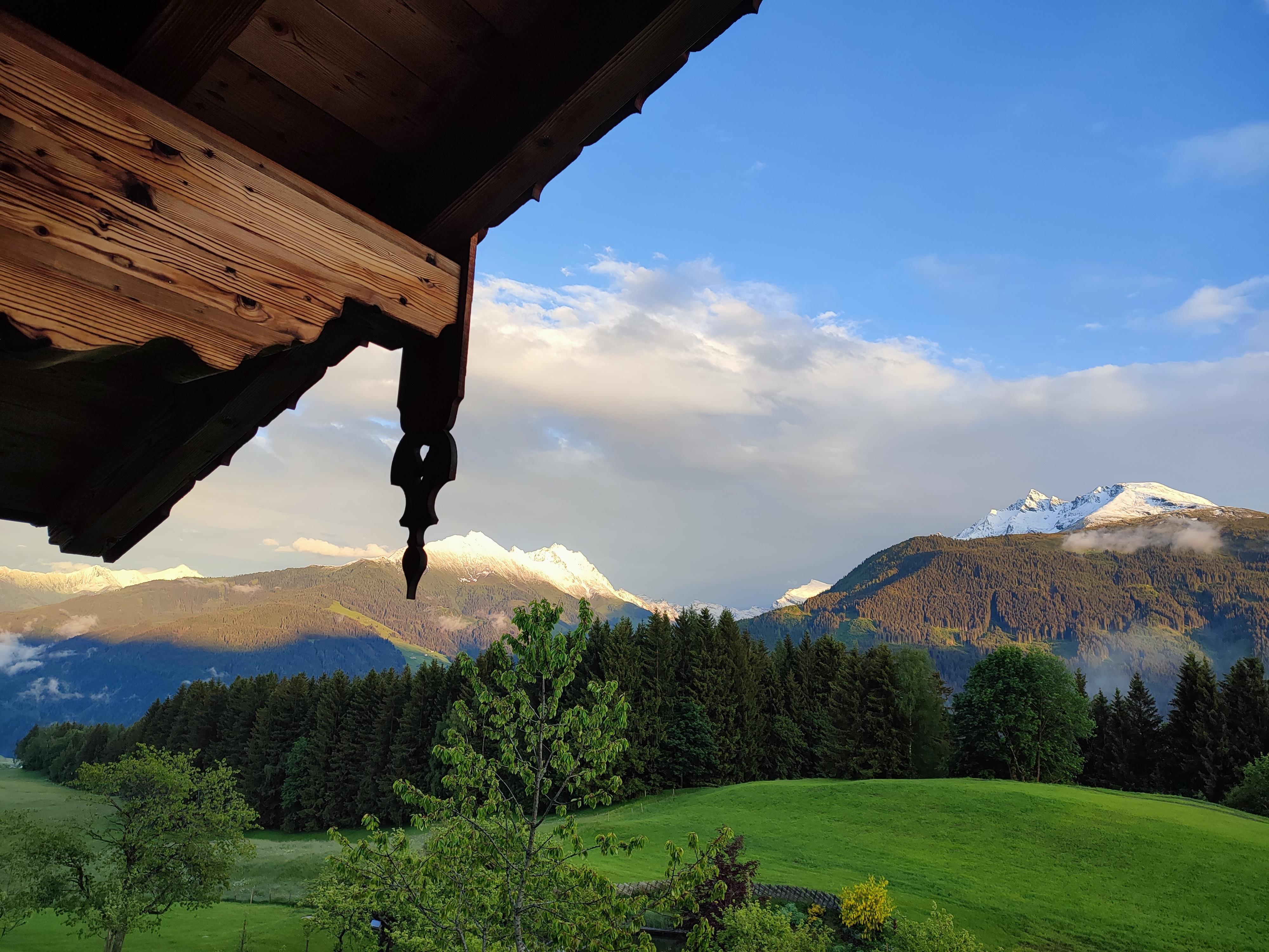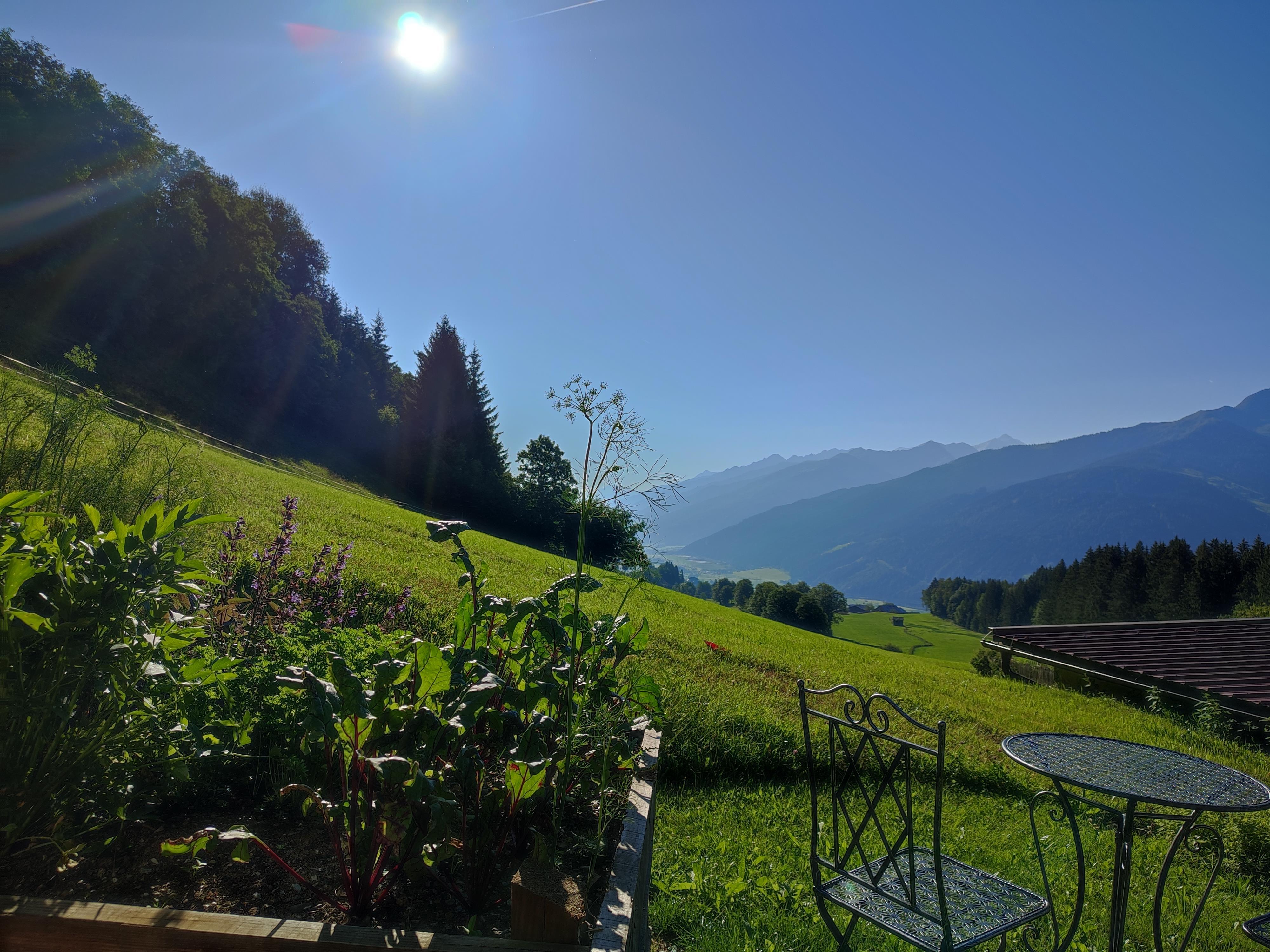 Der Hof befindet sich auf 1100 m Seehöhe und somit meist oberhalb der Nebelgrenze. Man hat eine gewaltige Aussicht auf die Hohen Tauern von Krimml bis Zell am See.