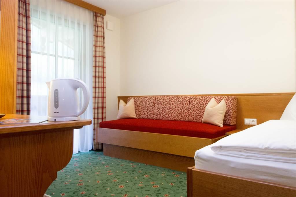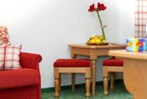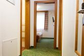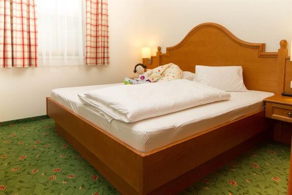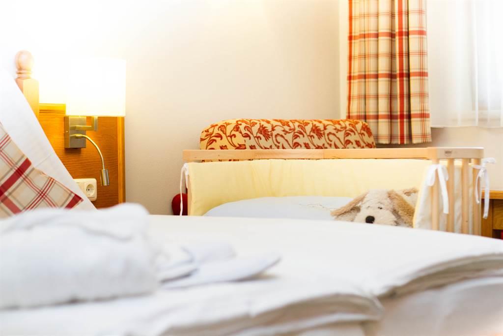 Freundlich und hell eingerichtet ist das Familienzimmer mit 2 Räumen auf die Bedürfnisse von kleineren Familien abgestimmt. Familiensuite (2 Raum), ca. 33m² mind. 2 Erw. und 1 Kind 1 Elternschlafzimmer 1 Kinderzimmer mit 2 Kinderbetten Dusche u. WC räumlich getrennt Babyüberwachungsanlage Kühlschrank Flat-TV, Telefon, W-LAN, Safe, Fön Balkon (im Neubau)