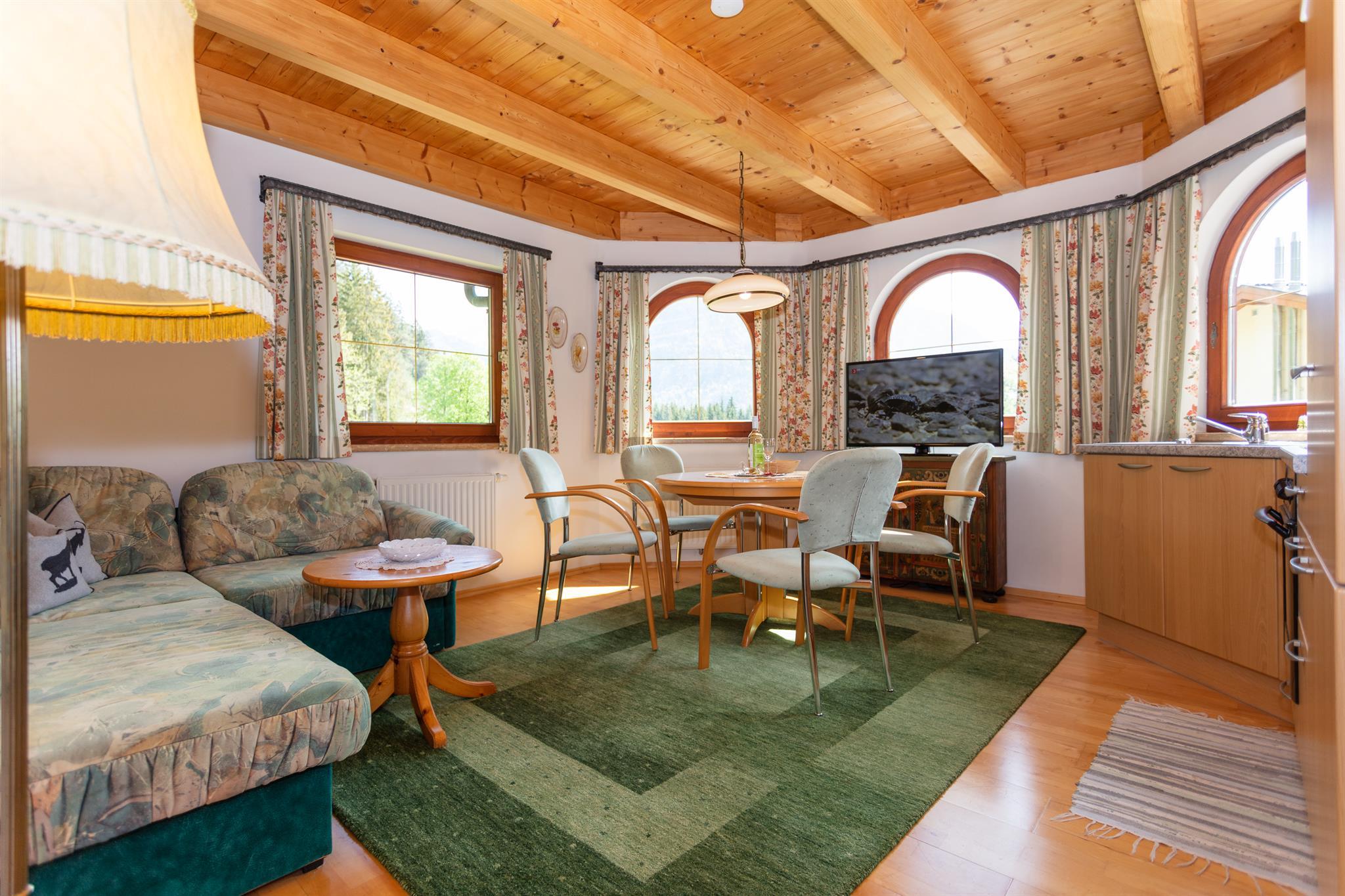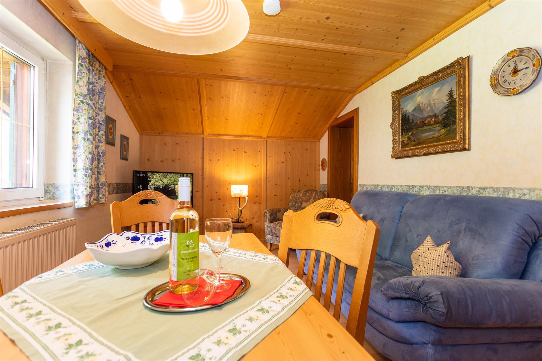 Liebevoll eingerichtete Ferienwohnung mit viel Holz, 2 Schlafzimmer, Kabel-TV u. Telefon, E-Herd.