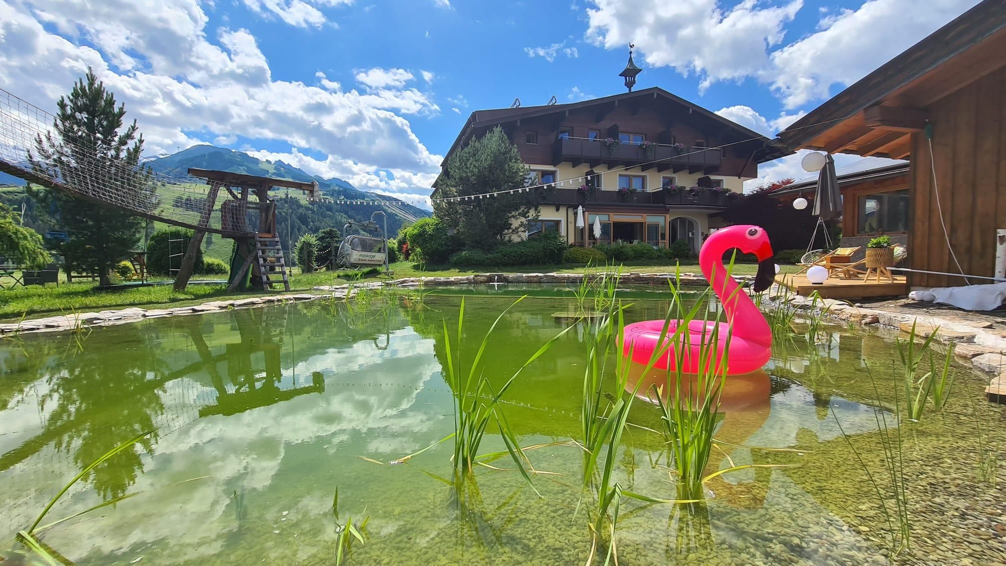 • eigener Garten mit Schwimmteich, Sonnenliegen, Grillmöglichkeit, Bergblick & Spielplatz