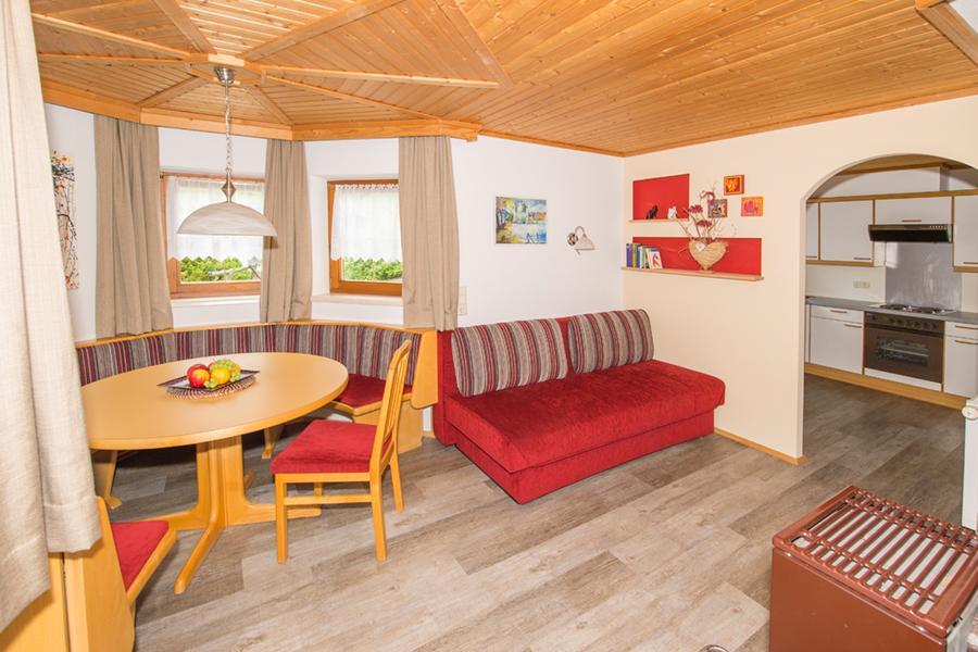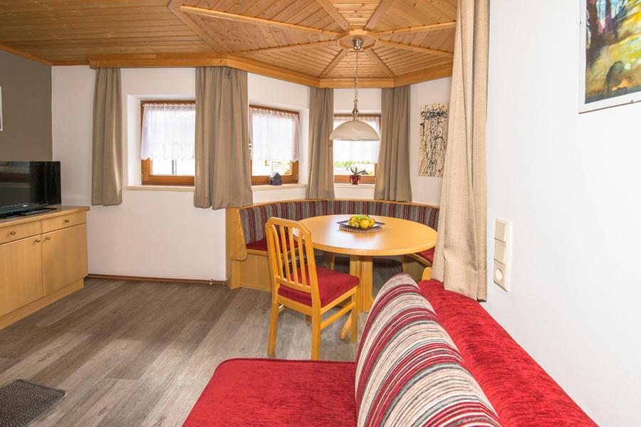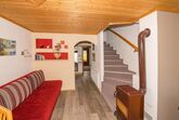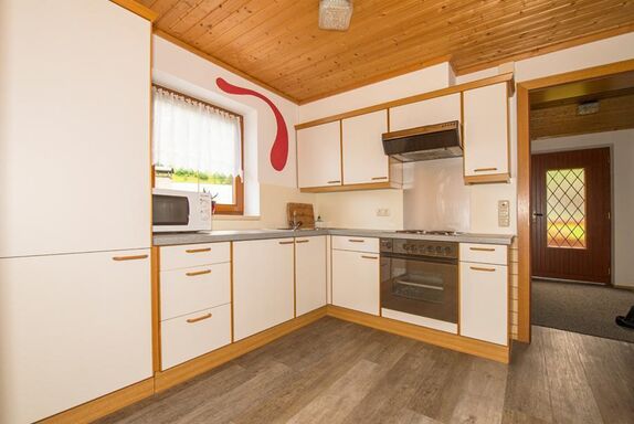 FEWO 1: ca 60m2, mit eigenem Auf- und Eingang. 1 2-Bettz. mit Zusatzbett, 1 2-Bettz. mit Kinderbett, 2 WC, Dusche; Wohnküche mit Sitzecke im Erker, gut ausgestattet, Ausziehcouch, reichlich Geschirr, Micro, Toaster, Wasser-/Eierkocher, Cafemaschine, Kühlschrank, E-Herd, Holzofen, WLan, alle Zimmer mit Kabel-TV, Geschirr-/Hand-/Duschtücher, PKW-Parkplatz.