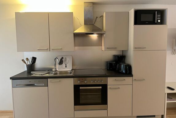 Appartement Höllberg, für 2 - 6 Personen, ca. 60 m², komplett ausgestatteter Küchenblock, mit Essecke und Geschirrspüler, großer Wohnbereich, 2 getrennte Schlafräume, Bad und WC getrennt, Sat-TV, Terrasse