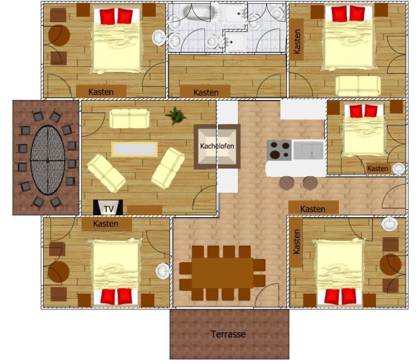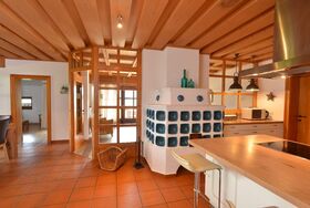 Appartement Hohe Tauern, für 10 - 14 Personen, ca. 180 m², große Wohnküche mit Kamin, Essecke und Geschirrspüler, großes Wohnzimmer im Wintergartenstil mit Kamin, 5 Doppelzimmer, Sat-TV, 2 Bäder, 2 große Balkonterrassen