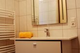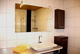 Neu renovierte Ferienwohnung, ebenerdig und barrierefrei bis zu 7 Personen, mit 3 getrennte Schlafräume 2x Doppelzimmer, 1x Dreibettzimmer 2x Dusche und 2x WC - barrierefrei, eine große Wohnküche mit ausziehbarer Couch und Küche mit E-Herd Geschirrspüler, Kühlschrank, Mikrowelle Sat-TV und Terrasse