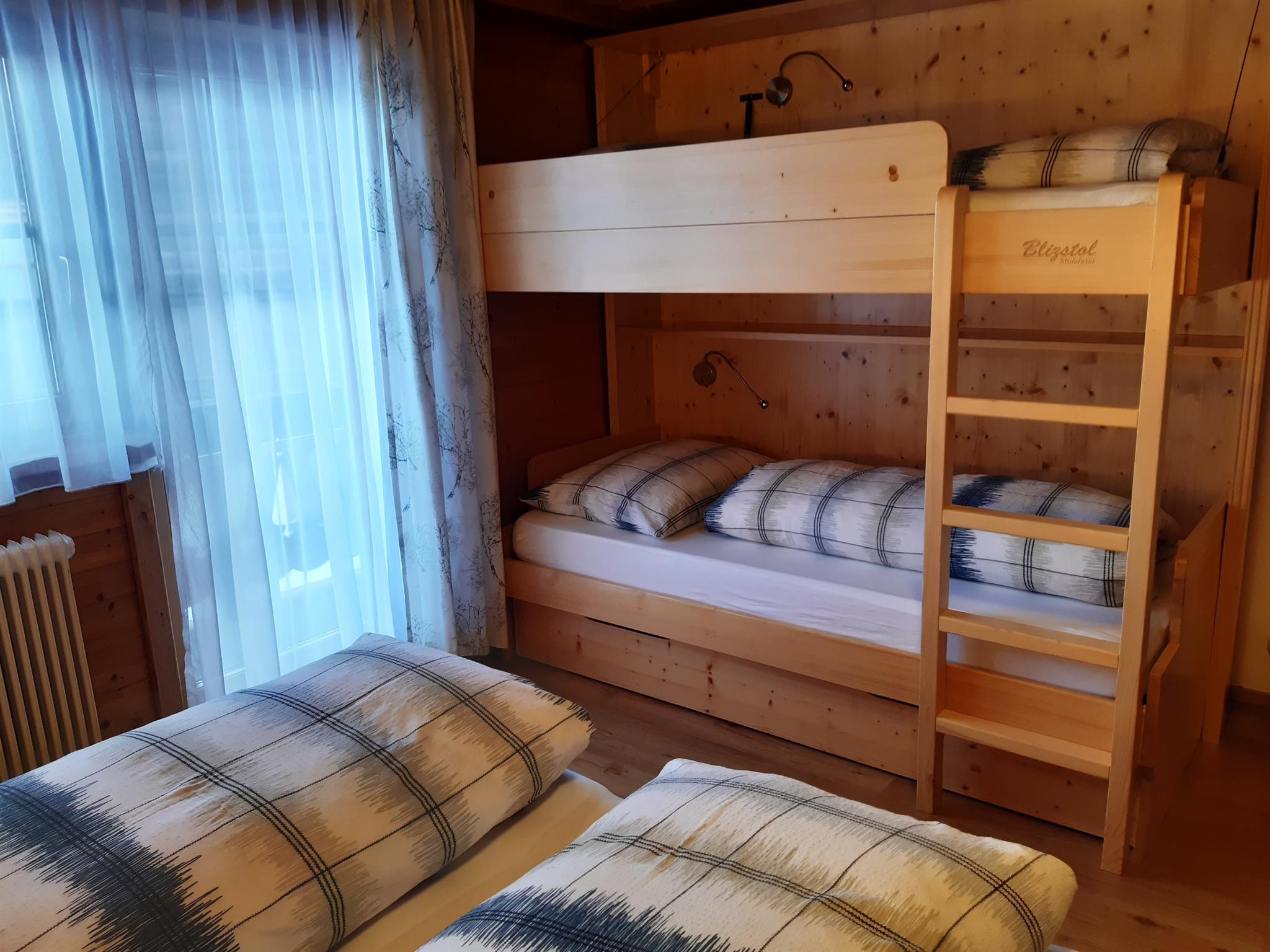Die sehr geräumige Ferienwohnung Breithorn im 1. Stock verfügt über eine voll ausgestattete Wohnküche, zwei getrennte Schlafzimmer, die insgesamt Platz für maximal sieben Personen bieten, sowie zwei Badezimmer und zwei separate WCs. Der Balkon ist von jedem Schlafzimmer aus erreichbar und lädt zum Verweilen und Entspannen ein.