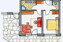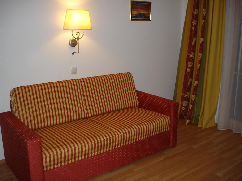 Appartement Morgenstern: großzügige Wohn-Schlafküche, 1 Doppelzimmer, Wohnküche mit ausziehbarer Doppelcouch, Vorraum m. Garderobe, Bad und WC getrennt, Aussichtsterrasse