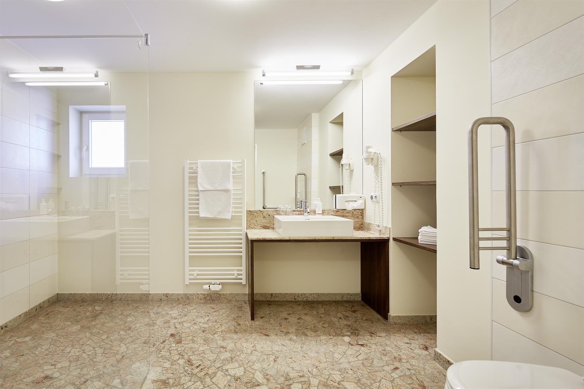 Großglockner-Zirbenstudio: ca. 40 m², mit integriertem Wohnbereich, Dusche, WC großteils getrennt, Kabel-TV und Balkon. Allergiker gerechte Studios mit Zirbenholz!