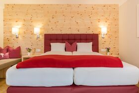 Ca. 30 m², großteils mit integriertem Wohnbereich, Dusche, WC getrennt, Kabel-TV und Balkon; Allergiker gerechte Studios mit Zirbenholz!