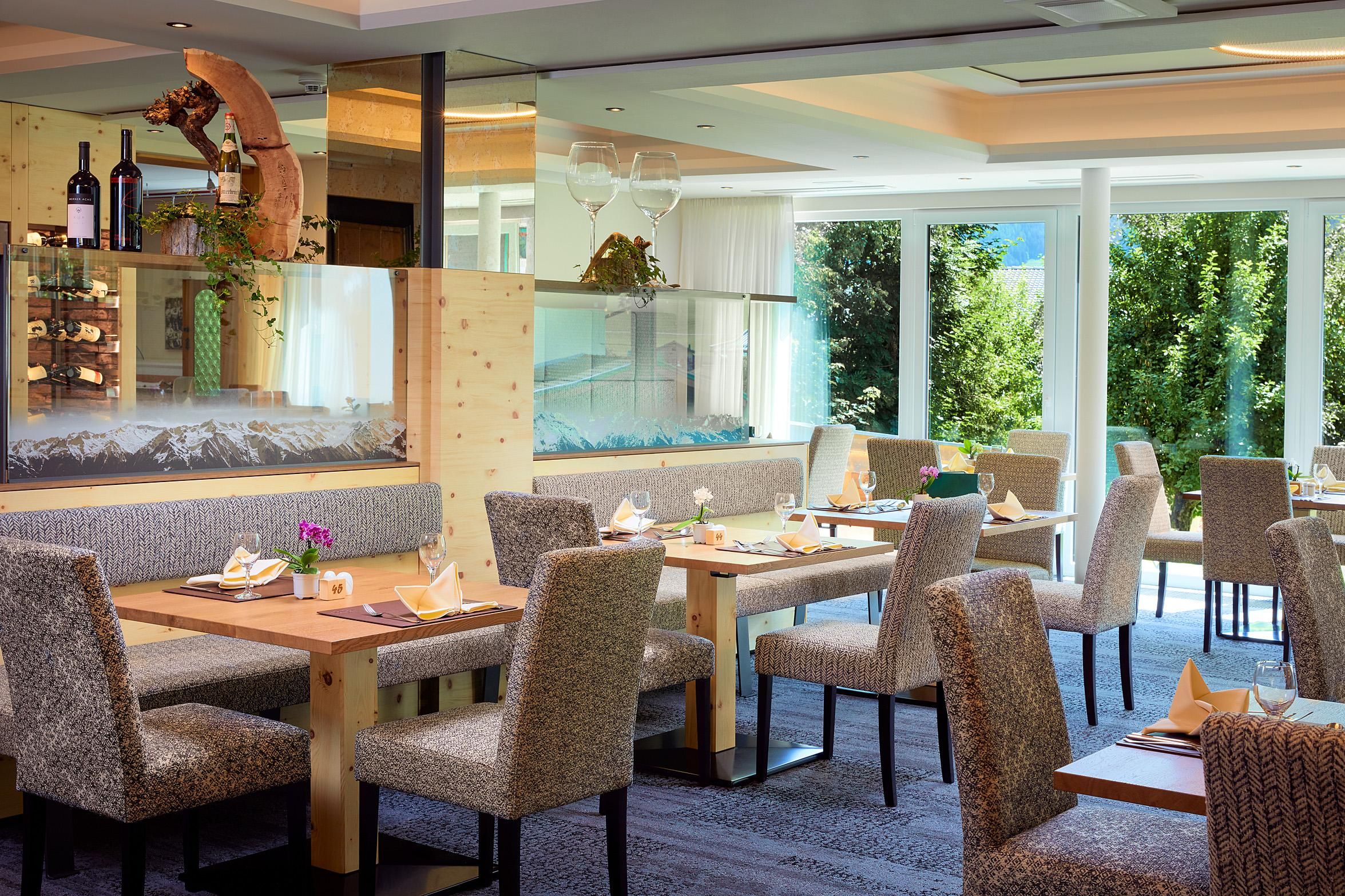 Nach einem herrlichen Urlaubstag in der Natur entspannen Sie sich in unserer 200 m2 großen Wellness-Oase oder im Freischwimm-Biotop. Restaurant mit Buffetlandschaft, Bar und neu gestalteter Zirben-Speisesaal. Großzügige Studios und Suiten (mit Zirbenholz) sorgen für viel Komfort.