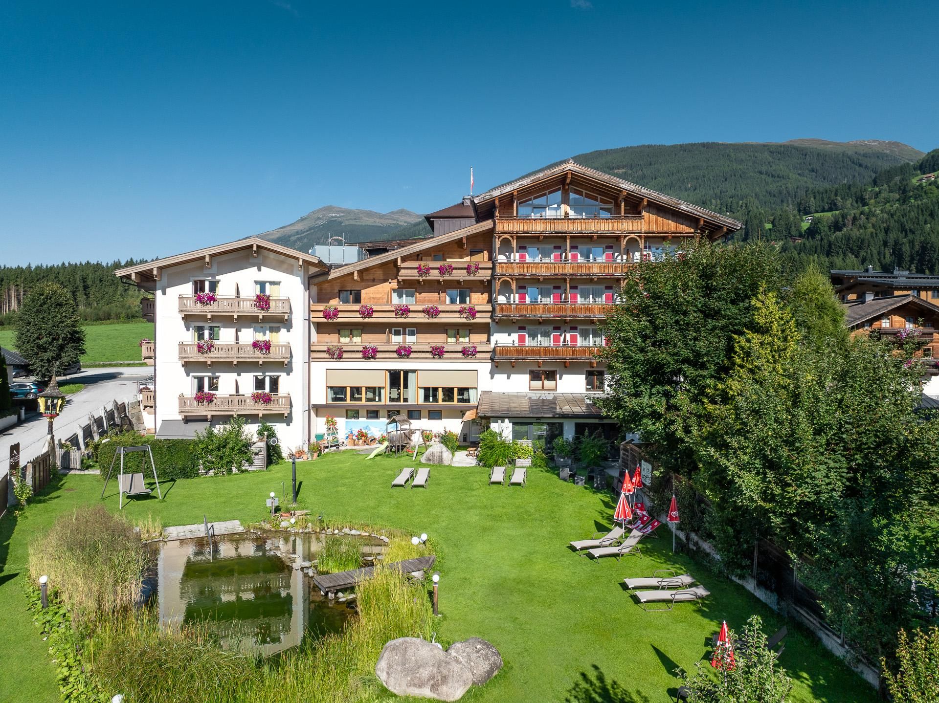 Nach einem herrlichen Urlaubstag in der Natur entspannen Sie sich in unserer 200 m2 großen Wellness-Oase oder im Freischwimm-Biotop. Restaurant mit Buffetlandschaft, Bar und neu gestalteter Zirben-Speisesaal. Großzügige Studios und Suiten (mit Zirbenholz) sorgen für viel Komfort.