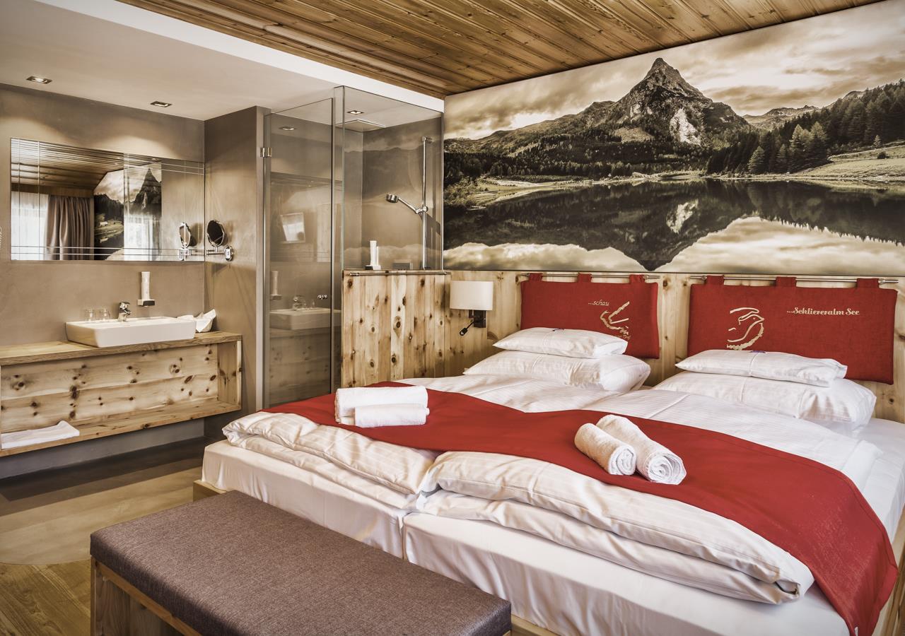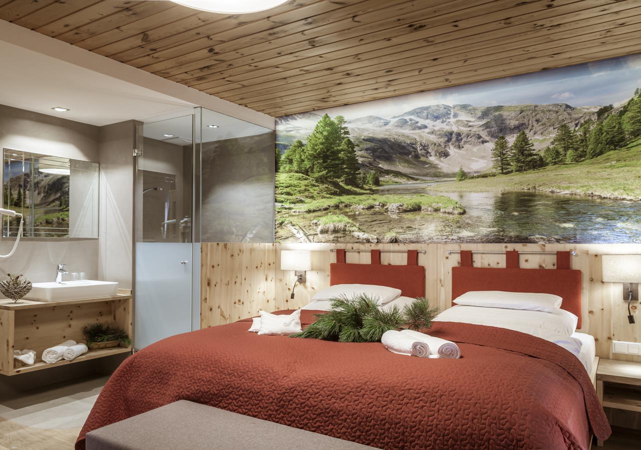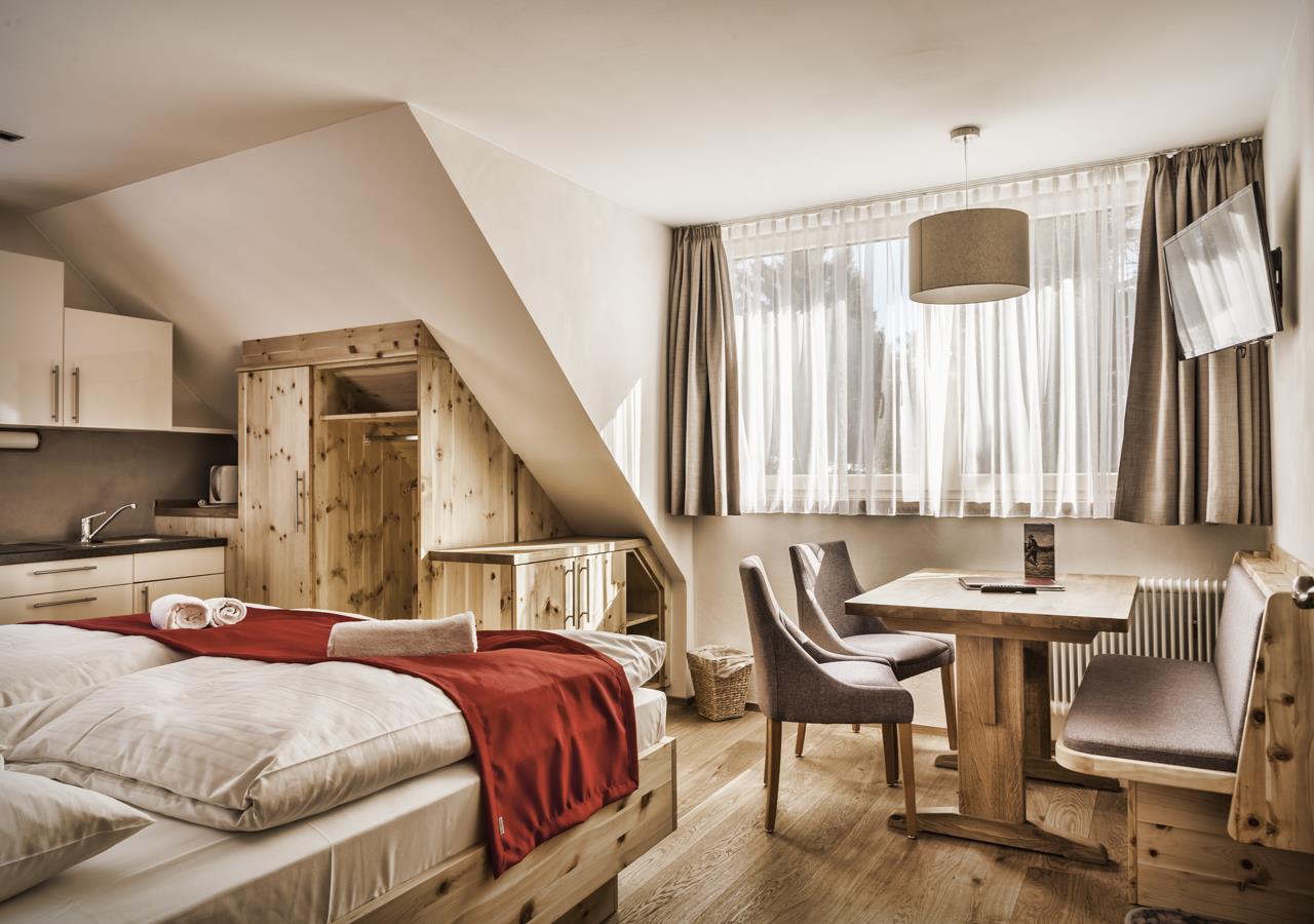 Doppelzimmer in der im Winter 2016 neu eröffneten 1. Zirben Pension. Die Zimmer sind mit Zirbenholzmöbeln eingerichtet. Für einen gesunden und erholsamen Schlaf sorgen der Duft des Zirbenholzes, sowie spezielle Matzatzen und mit Alpenkräutern und Heu gefüllten Kissen. Die Doppelzimmer sind ausgestattet mit Dusche/WC, teilweise getrennt. Für einen guten Start in den Tag sorgt unser reichhaltiges Frühstücksbuffet mit vielen Produkten aus dem Biosphärenpark Lungau.