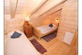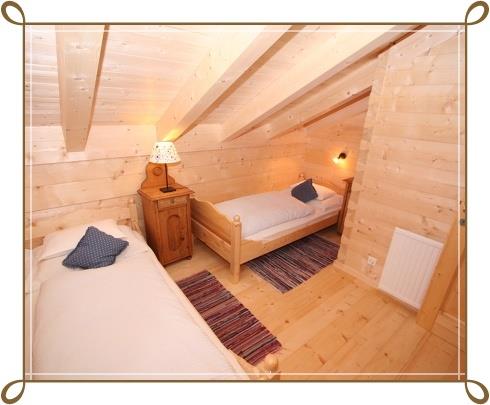5-Zimmer-Chalet 75 m2 auf 2 Stockwerken, teilweise abgeschrägt, romantisch und mit viel Holz eingerichtet: Eingang. 1 Doppelzimmer mit E-Heizung. Wohnküche (4 Kochplatten, Backofen, Geschirrspüler, Glaskeramikherd, Mikrowelle, Tiefkühler, elektrische Kaffeemaschine) mit Essecke und Kachelofen. Ausgang zur Terrasse. Dusche, sep. WC. Bodenheizung. Obergeschoss: (steile Treppe) abgeschrägtes, offenes Wohn-/Schlafzimmer mit 1 Doppeldiwanbett (2 x 90 cm, Länge 200 cm), Kabel-TV und DVD. 2 abgeschrägte Doppelzimmer. Zur Verfügung: Holz (gratis). Internet (Wireless LAN, gratis). Im Preis enthalten: Bettwäsche, Toilettwäsche, Holz für Kachelofen, Parkplatz, Sauna, Schneeschuhverleih, Schlittenverleih, DVD-Thek.