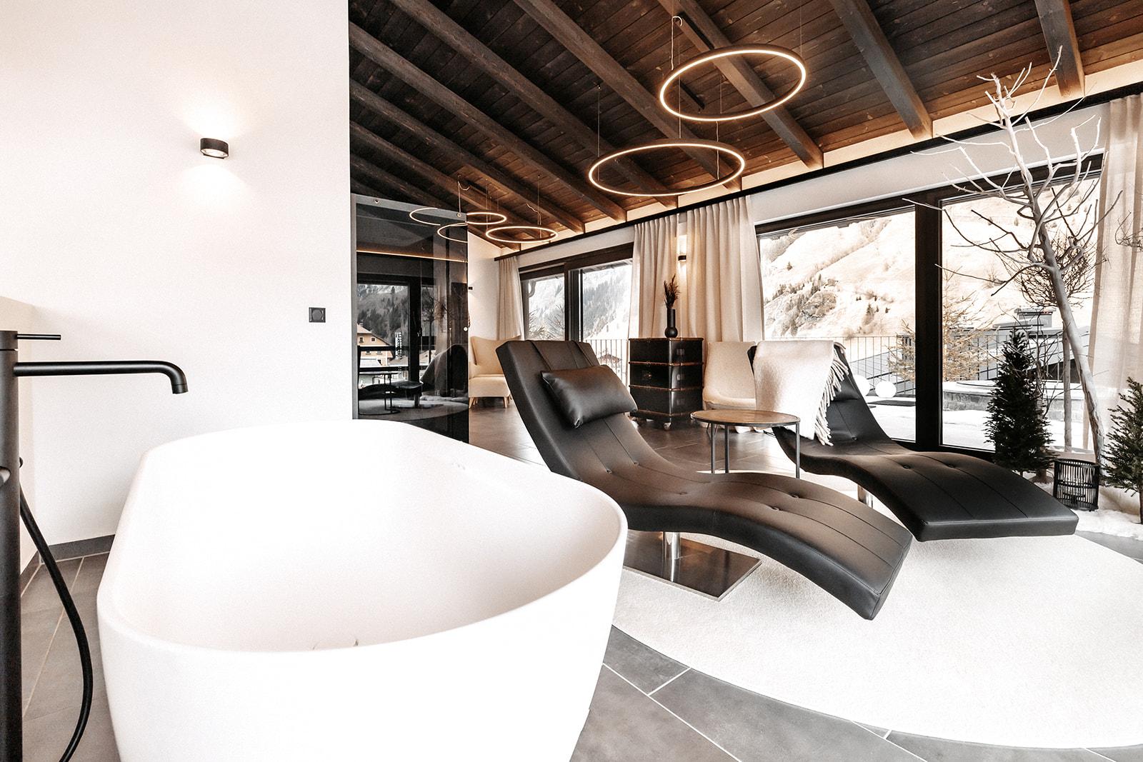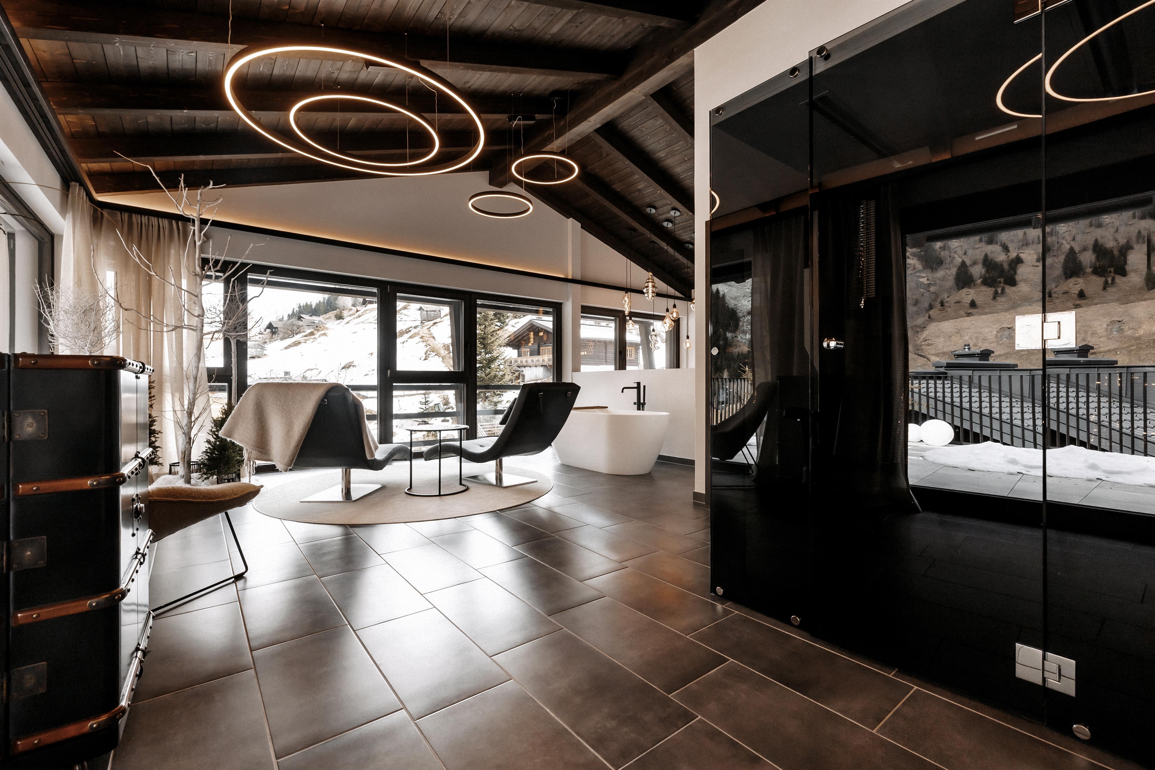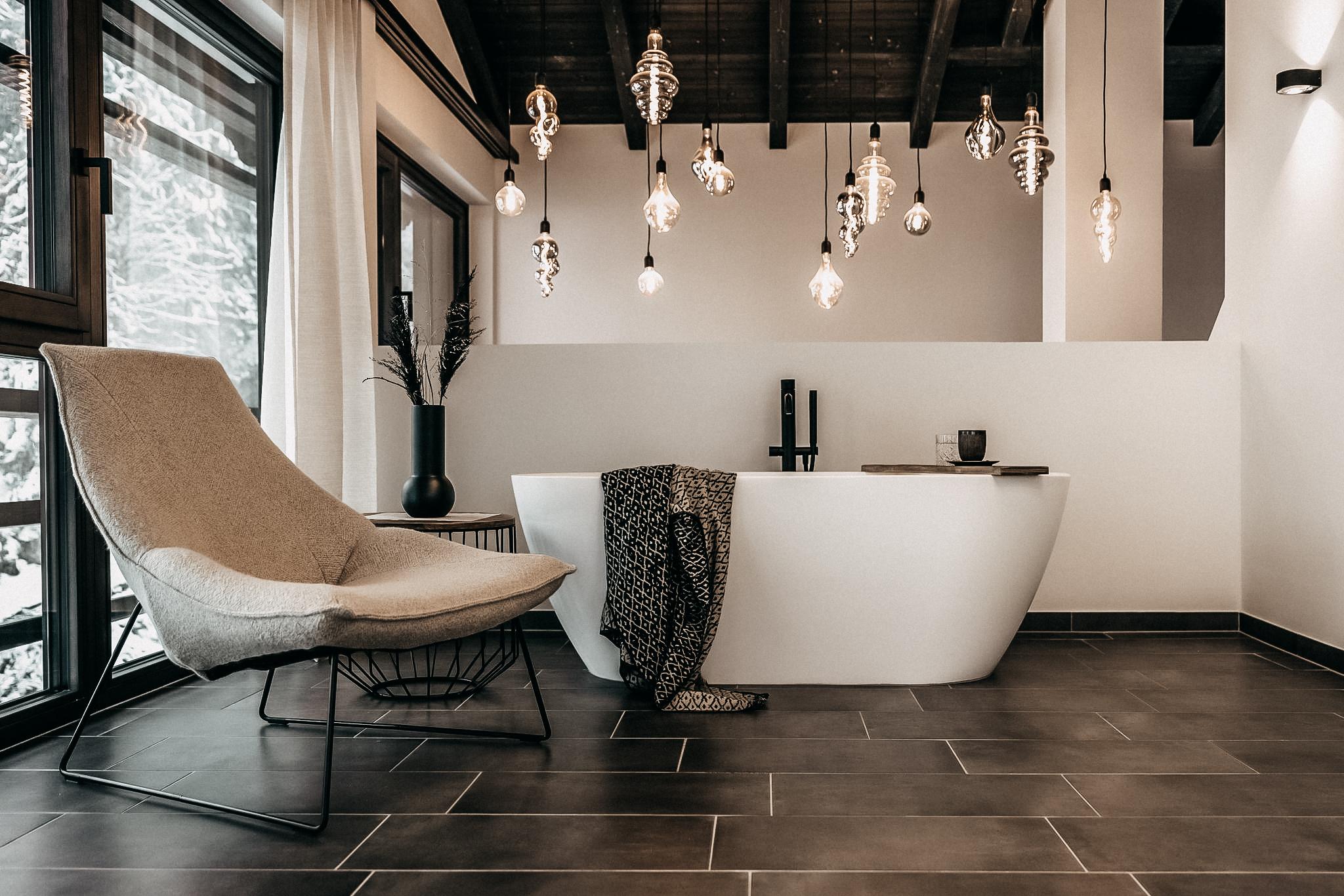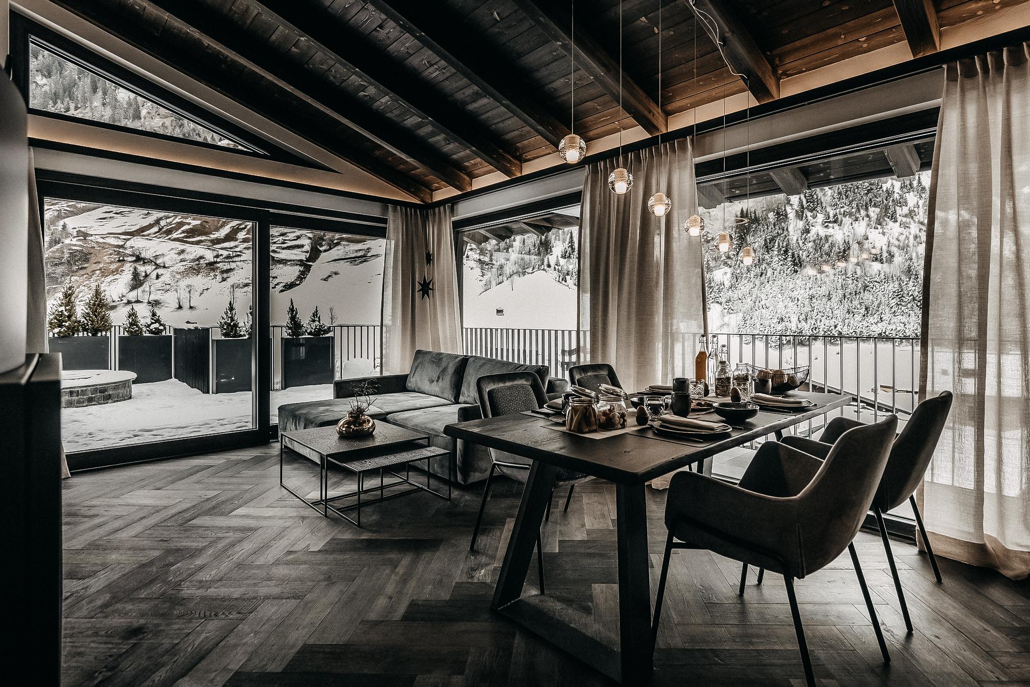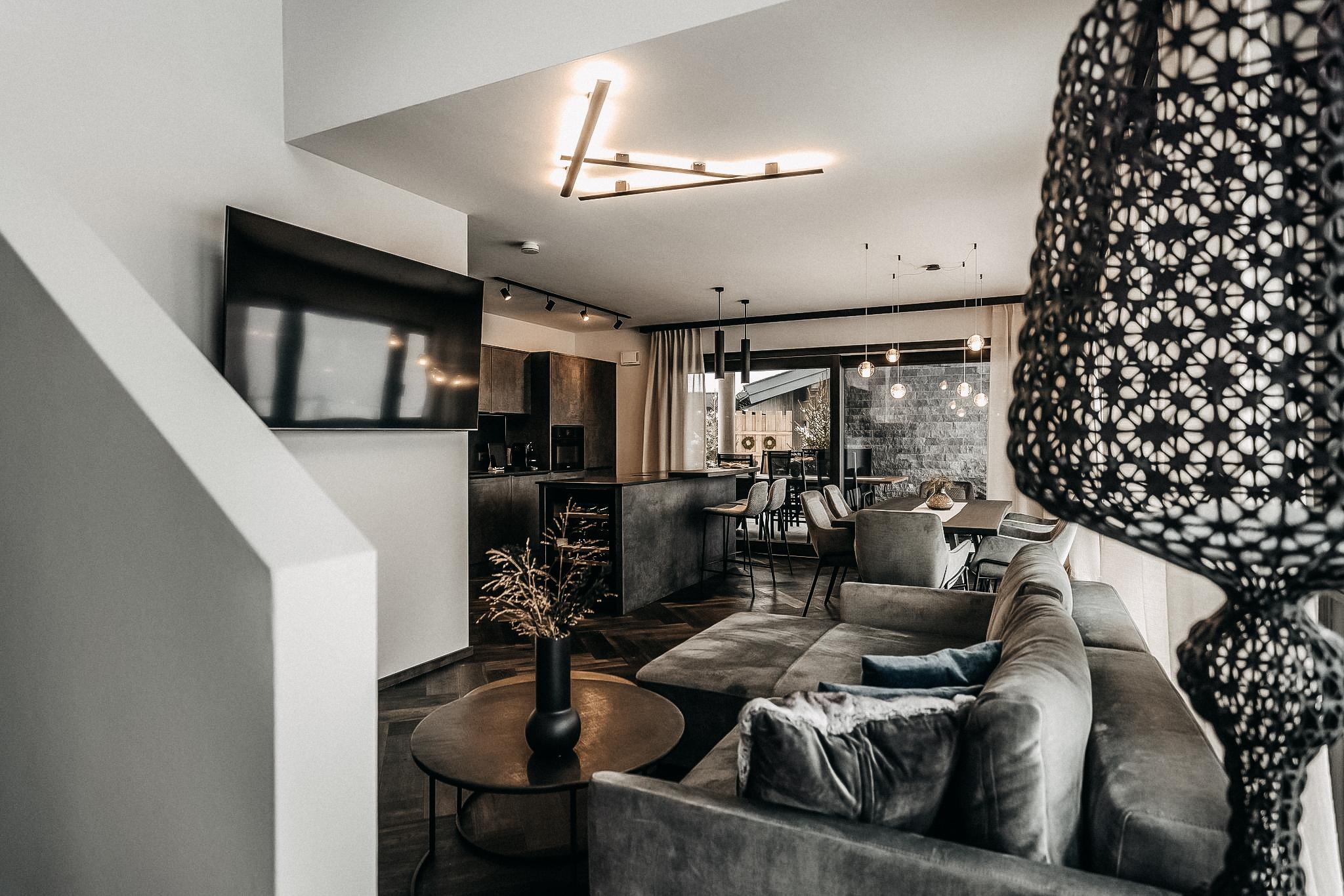 Luxus über 3 Stockwerke: Mit dem offen gebautem Dachstuhl, den großen Glasfronten und dem privaten Wellnessbereich genießen unsere Gäste die Ruhe im Chalet Hohe Tauern, ohne auf Komfort und Design verzichten zu müssen. Mit 150m² Wohnfläche, 45m² Terasse, 100m2 Garten und 40m² Outdorküche beleiben keine Luxuswünsche offen.