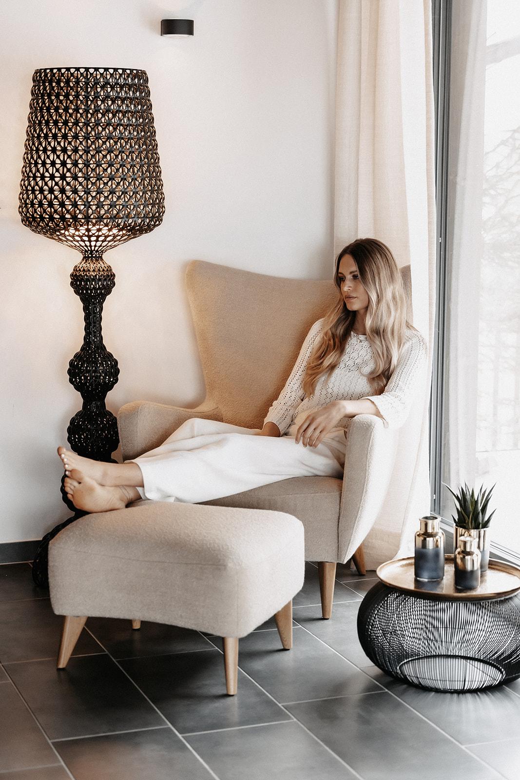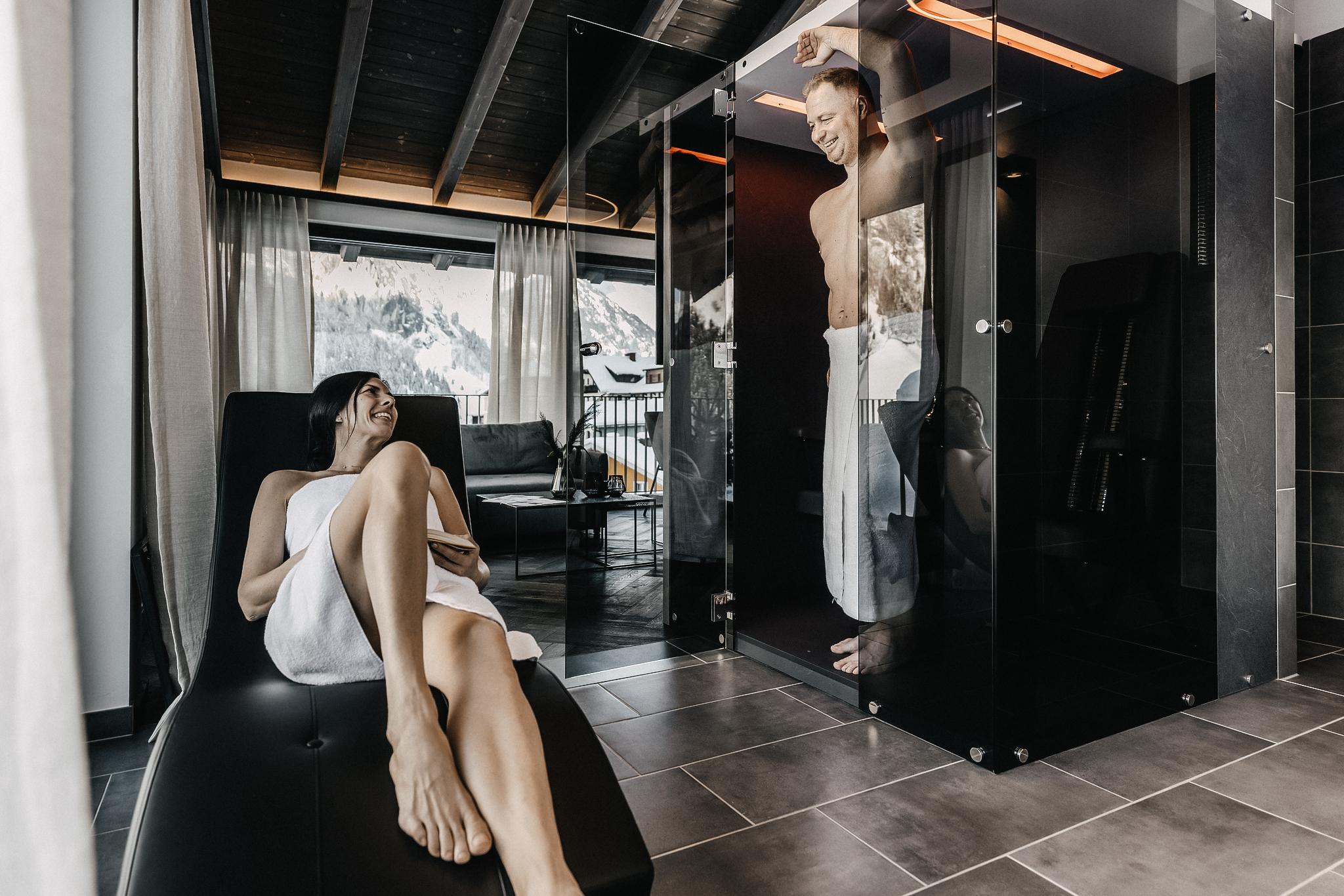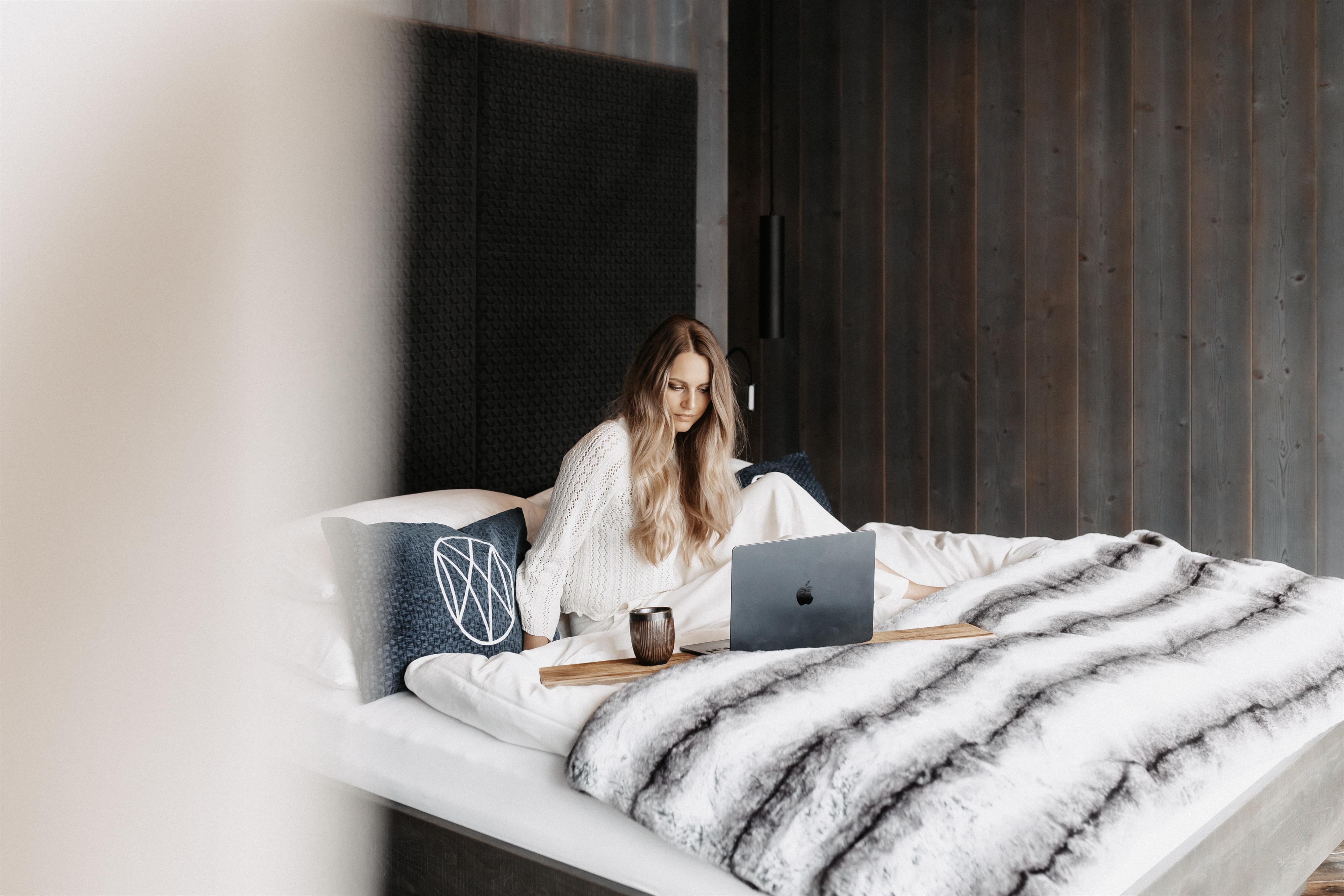 Auf 3 Stockwerken verteilt stehen drei Schlafzimmer inklusive privatem Badezimmer zur Verfügung. Im Doppelzimmer im UG bietet sich ein beeindruckender Blick durch die große Glasfront, die anderen Schlafzimmer sind direkt bei Wellness- und Wohnbereich. Wir achten auf Naturmaterialien und Details, der Designerholzkamin im Wohnbereich ist ein besonderes Highlight.
